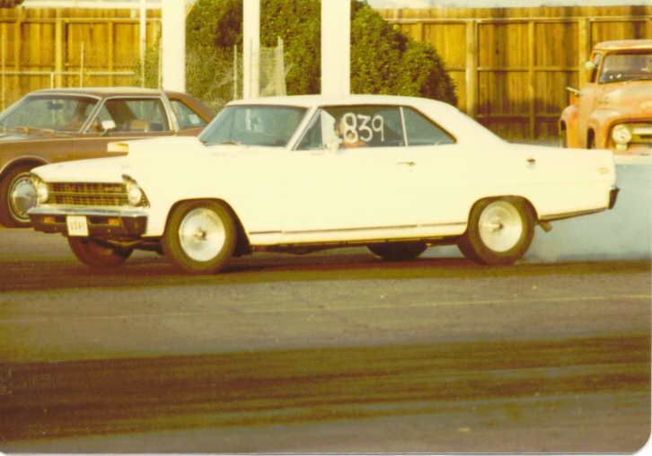 Nova..was the BANE of street racers in socal. The guy would DRIVE it to OCIR, run mid to high 9's the way it looks in this photo, and DRIVE it home. Was a "big" small block running an 1150 dominator carb!! It took him a year to dial the car in. He actually ran some of the pro gas brackets to have fun. Right after this photo was taken, he had to install a full cage. It was amazing to watch.