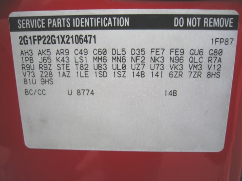 Here is a pic of the parts label when we had it. If I could have I would have kept it!
