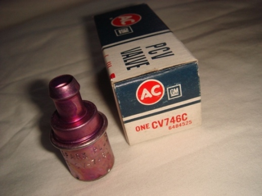 Super nice Purple CV746C PCV valves, NOS in the box. I have 18 of these valves fresh from a case. MINT and perfect coloring. Each valve is correctly embossed " AC SPARK PLUG " " TYPE CV-746C "