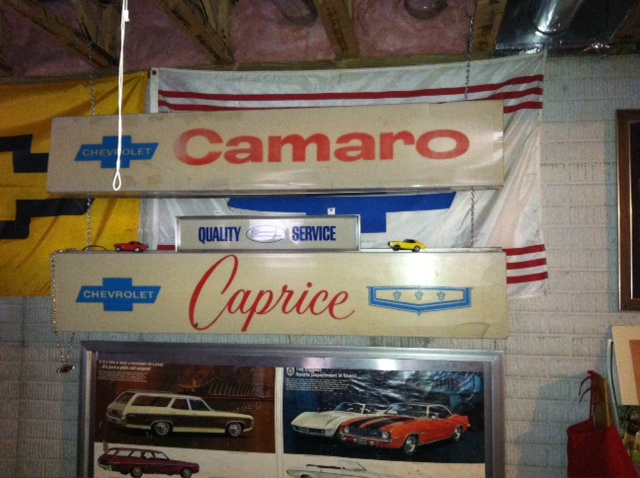 Those Sports Dept Signs... [img]<<GRAEMLIN_URL>>/drool.gif[/img] [img]<<GRAEMLIN_URL>>/worship.gif[/img] </div></div> Here's some better pics of the signs Dan. The 3 were window art that I have framed to hopefully preserve. The others, hung inside the dealer. The large aluminum framed one is from 69 and the light ups are from 1967. I have all the individual 68's , but have run out of room to hang them. BIG |