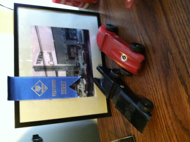 He also used a bridgeport and made the car look like a small indy car..with a wing and all. My part of the project was to help sand the car and help paint it Ferrari red !! We went to the pack meeting that year and I won first place by a mile. Then we were invited to another pack's meeting to challenge thier winner and I beat him also. That little car only lost one time ever and that is when my Dad made a new car the following year for my younger brother !!!