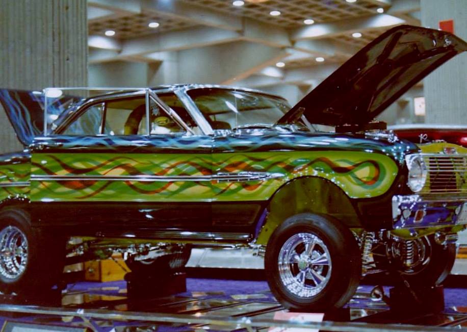Yeah that Falcon was at the very first indoor show I ever attended as a kid 1977, and it has influenced my taste to this day..wild paint, lots of chrome, high stance and wide Cragars sticking out 3 inched out of the quarter panels and tunnel rams. It was fresh at the show and I can still remember the paint smell coming off of it..I'm serious. |