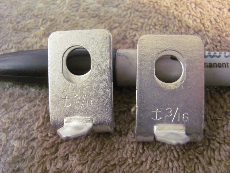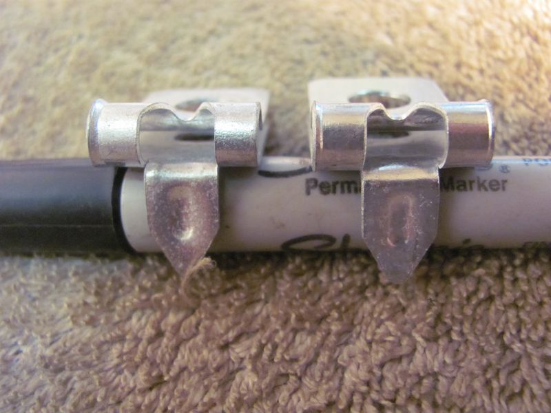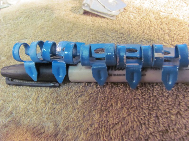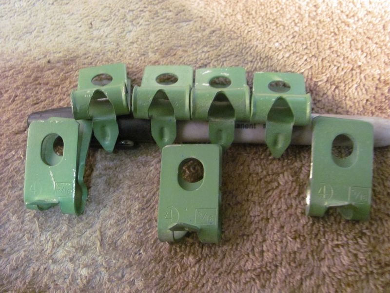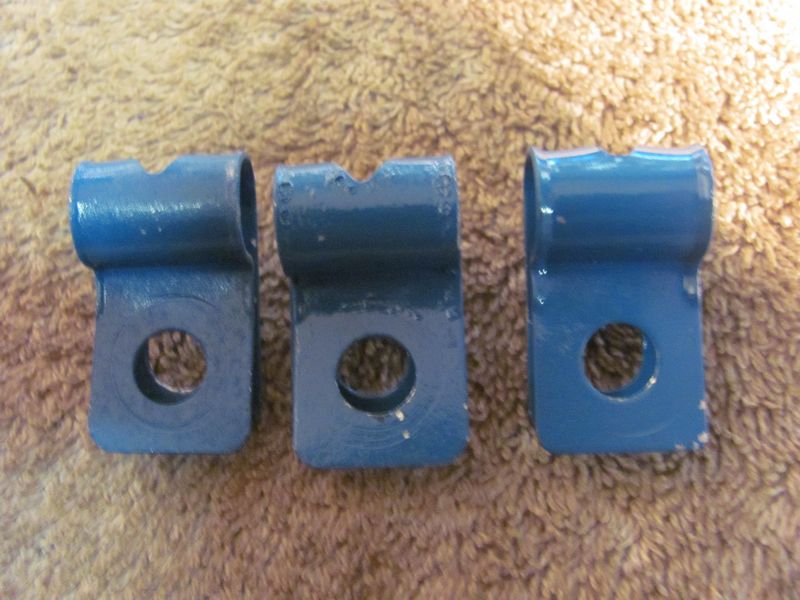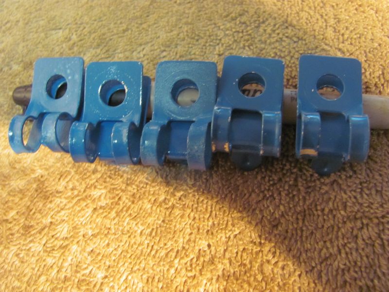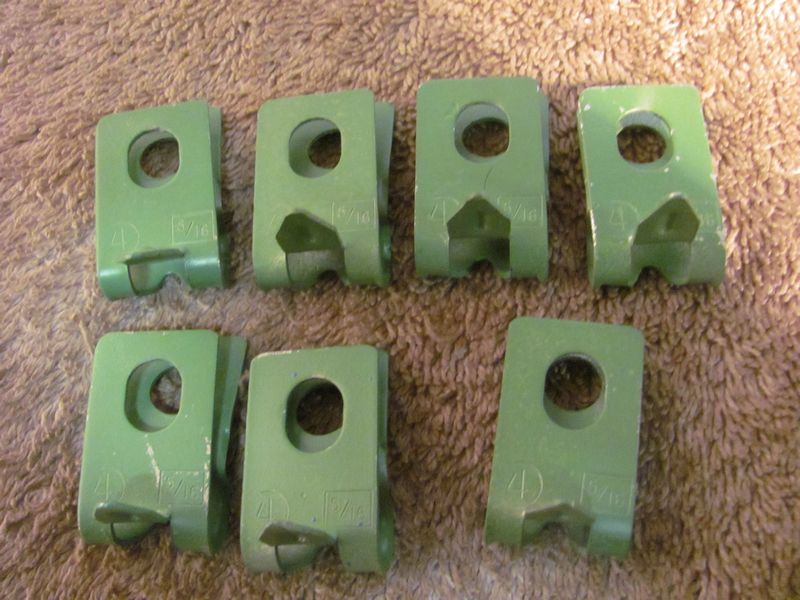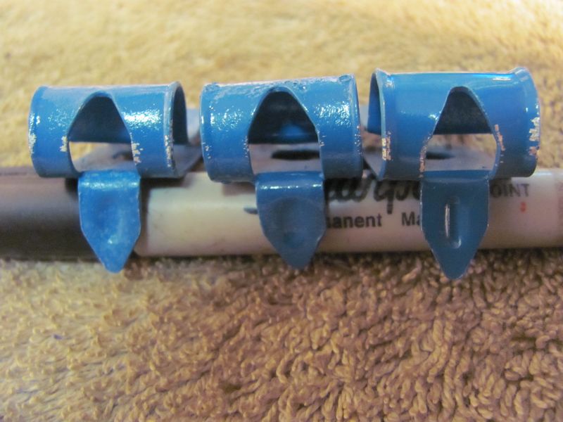 Originals have a reinforcing ridge in the tab. set 1, 5 3/8 clips open design (75.00) set 2, 3 3/8 clips closed design (45.00) set 3, 7 5/16 clips (15.00 per clip or 90.00 for all 7) set 4, 2 3/16 clips (30.00) |