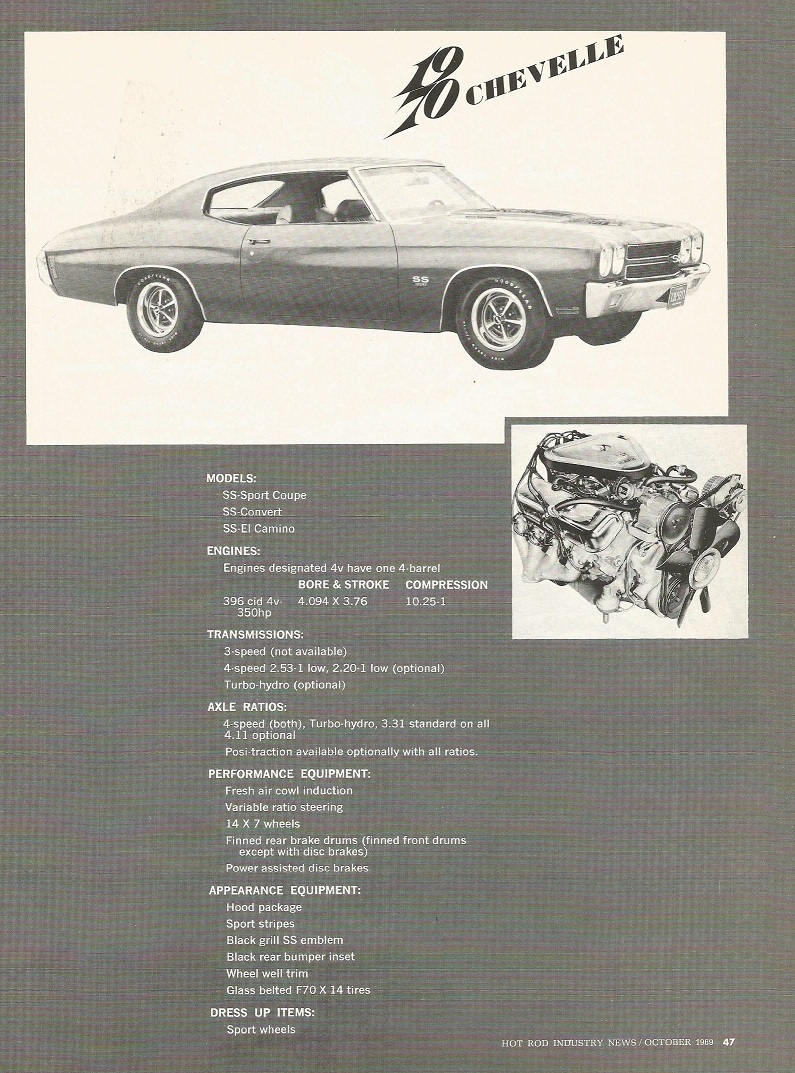 Hot Rod Industry News October 1969, Interesting how they Picture the Corvette Tri-Power with the 70 Chevelle SS and they only mentioned the 396 350 HP motor at that time when Chevrolet clearly had the L78 as well and for the Nova they only mention the 350 300 HP motor??