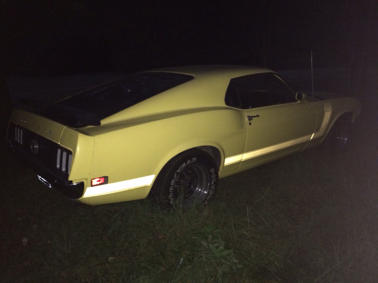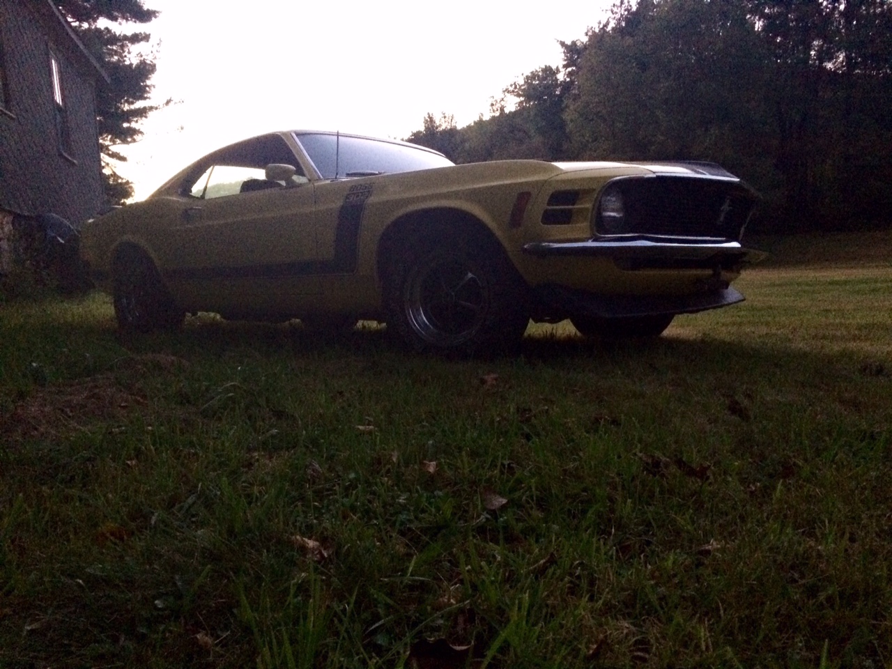 I'm not a Mustang guy, but this was a great find! Not quite a barn find, but instead a storage find. This Boss was put into storage in the around 1980 and just recently pulled out of storage to be sold before winter. A great car that has never been apart. Car has just over 51K original miles and has never been apart. Great sheet metal with some little bubbles, but no holes or rot anywhere. All original suspension, springs, lines, brakes, great floors, etc. The car has a repaint that dates back to the 1970s, since the previous owner never had the car painted. Since finding the car we were able to verify the "born with drive train" and also verified all the original options with the Marti report. Original shaker, power steering, locker rear, 3.91 gears, close ratio 4 speed, chrome magnum 500s, console, rear spoiler, sport rear seat, deluxe steering wheel, tach. We installed a new gas tank, oil/filter, spark plugs, air filter, battery, and rebuilt the carb; now the car runs great.