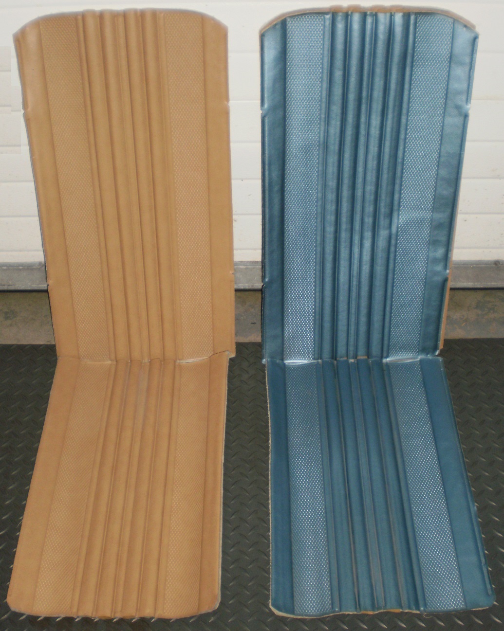 I installed a set of dark green inserts in my tired old orig buckets found the orig dark green Material and had them redone to orig specs. I Have a whole roll of dark green material which I purchased just to have it on hand.There is enough material to do 3 interiors. If you need some I can part with some. You most def can purchase the material for any collour from a reputable seat restorer. The diff of orig seats and repro seat covers is huge. I GRADE cheese on the diamond pattern on my orig seat inserts Cant post a pic of my interior right now. PJ Edited by P.J. (Yesterday at 12:59 PM) |