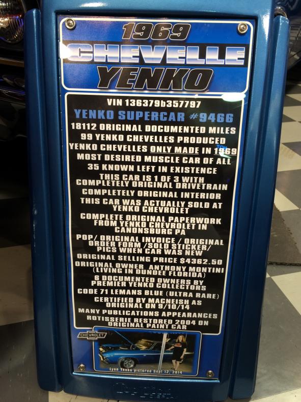 Been asked to sell this very rare Original Documented 18,000 mile Lemans Blue 69 Yenko Chevelle 427 SUPERCAR, selling new at Yenko Chevrolet. .Find a better documented Yenko Chevelle with its original drivetrain, Original interior, and this much documents, Sales order, sales invoice, protecto plate,sold sticker with its original owner still alive!! Judged 993 points. Scroll down to see more info... SOLD!! Thank you Yenko.net Car is coming out of Private collection with other rare cars.. Another HAPPY CLIENT.. Rich P 954-899-6325 or [email protected]