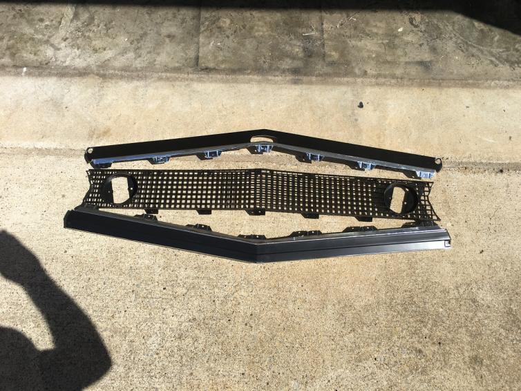 Upper trim, center grill and lower trim. All NOS. I do not have the box for the upper trim piece. These are not perfect as they have a little box wear on the black portions but they are still NOS and great pieces.. SOLD!!