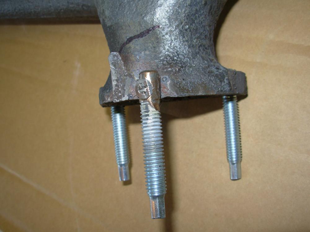 Would anyone know if there is a market for an original pair of GM #3942527 & GM #3946826 exhaust manifolds w/original smog tubes & extensions? With one catch---the LH side has a 2" hairline crack (outlined in black ink in photo) along with an ear missing where the one mounting stud area is broken (see screw in photo). We had the unfortunate incident while replacing the original mounting studs with new ones. While there is nothing structurally wrong with the RH side all the casting numbers are not legible. The mounting bolts on this side cooperated and were replaced with no problem. This pair of manifolds were removed from a January, 1969 Chevelle Concours wagon--it came with a factory 350/300HP 4-speed (still have before photos). I managed to buy the entire smog system A to Z about 6 years ago and had all of the above restored for my '69 Camaro. At this point the only thing on my car now are the smog pump, pulley and brackets, and all original mounting bolts. Like to hear some suggestions or comments as to would there be a market for such manifolds. I don't have the desire to ship them out and have them repaired because I won't be using them. Thanks in advance. Look forward to hearing from you guys. Check out the pics...