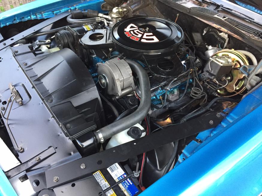 I scrubbed the original shroud with soapy water, dried it, and then misted it with SEM Laundau Black vinyl paint and it looks just like new. The radiator went in fine. No issues at all other than the overflow nozzle points down at a 7:00 position when a 1973 and newer Firebird needs it at the 9:00 position for the overflow tube to route to the factory catch bottle properly. Not a big deal but I had to find a different section of hose as it was one size smaller nipple and the original hose was too big. The car did run at around the same temperature as before - around 195 to 200 with a 160 thermostat. It was 80 degrees outside. I will replace the thermostat tomorrow after I test it in some hot water to see if it is actually opening at the correct temperature. I just tested two old 160 degree units on the stove in some hot water and they didn't open til at least 170 or more. |