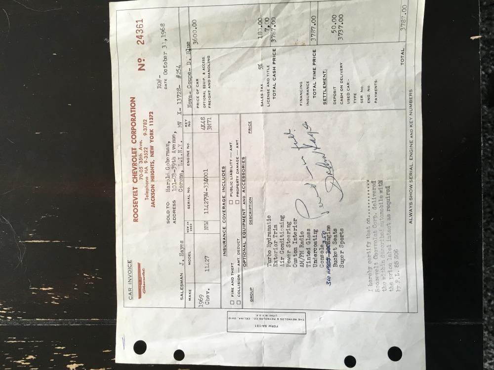 On Camaro Research Group they have a section for orphans. Do any of the Nova groups have this? A post came up on the VCCA. She's trying to find here father's 1969 Nova & she has the invoice for it. Vin is 114279w334001. Thank you, Joe