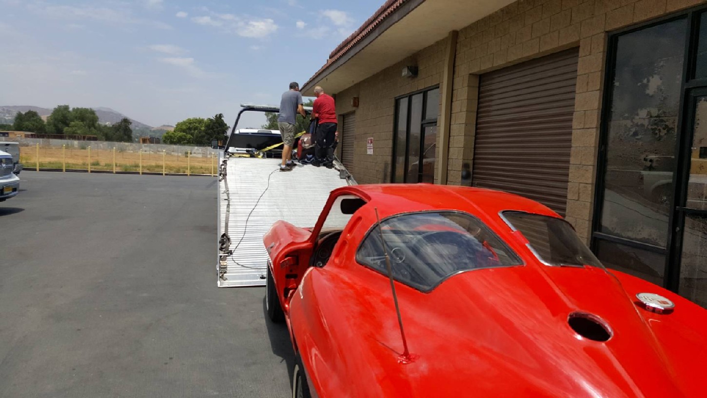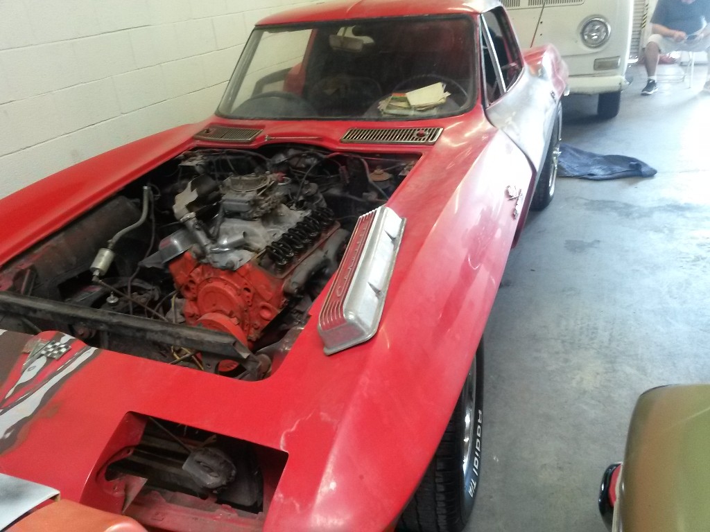 Was asked to look at this garage find the other day. Turns out it's a factory Black on Black Split Window Fuelie. Couldn't have made many of those. Sitting since 73. No repop parts on it. Tags are original, Calif Car, nice frame, started the projet in 73 then, you know. All bonding strips in place, original nose. Had 4 original 64 knock offs. Power windows and radio, heater. Most stuff is there. Working on teaser pics. Please call me for more pics and info. Thanks SYC
