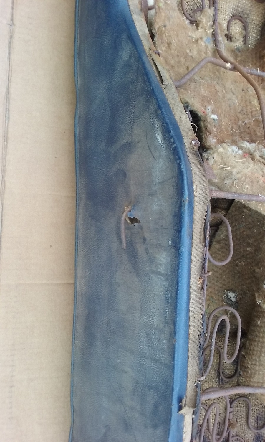 67-69 Camaro standard coupe interior rear seat bottom. Dark blue, original upholstery, usable condition, dose have a broken spring that poked thru the front of the seat