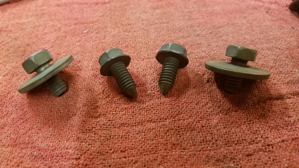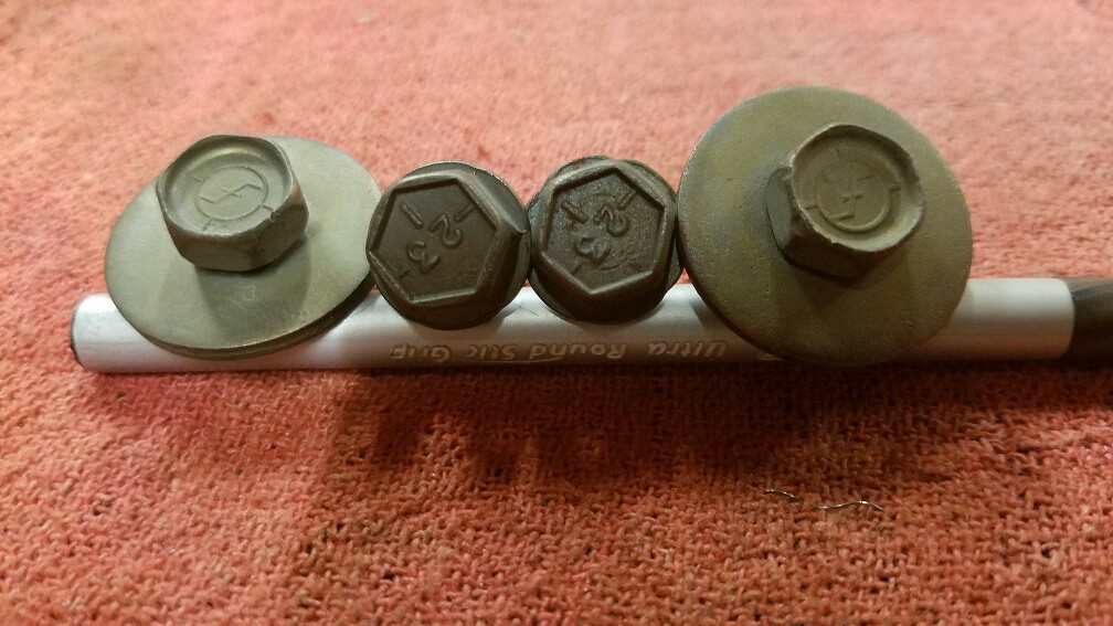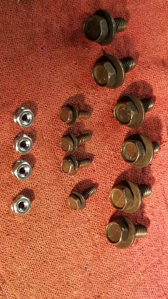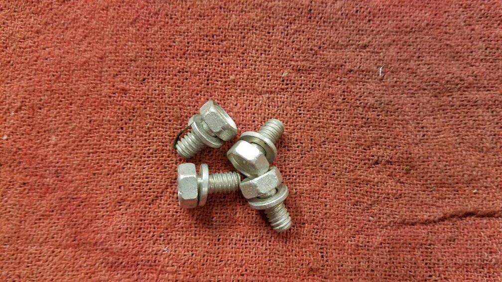 Camaro Chevelle Nova Firebird battery tray mounting bolts. Flying F head marking on bolt with a large washer and e head marking on the bolt with a flange head. $60 to set ship to the lower 48 if paid with PayPal friends and family. Three sets available.