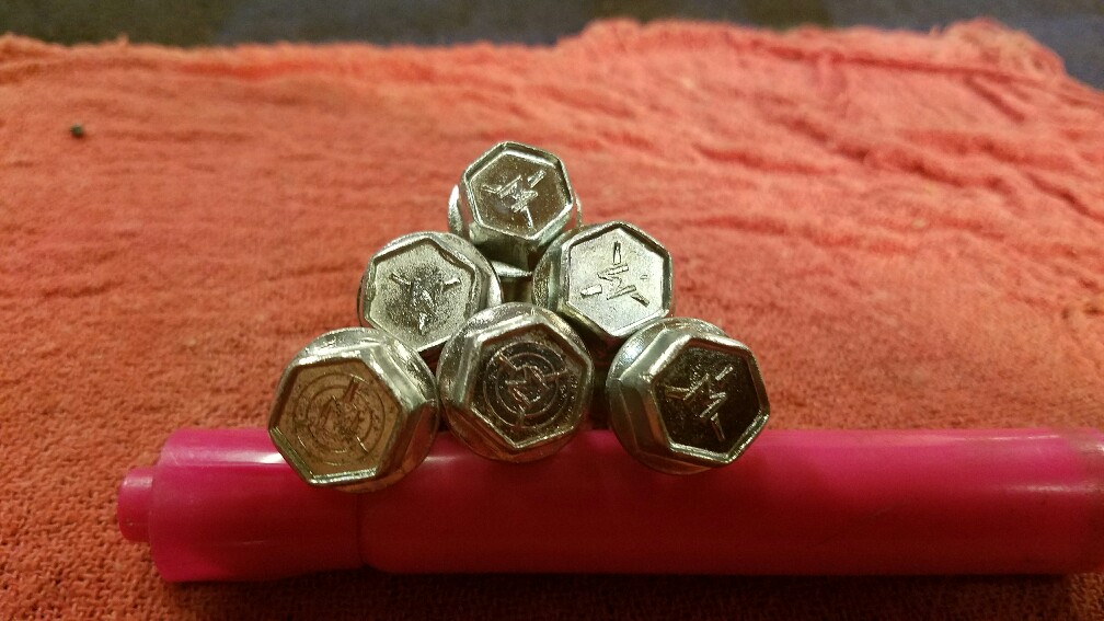 Chevelle GTO 442 brake and fuel line bolts. Three different head markings. GL, 23 and three dots. $60 for the complete set shipped to the lower 48 if paid with PayPal friends and family.