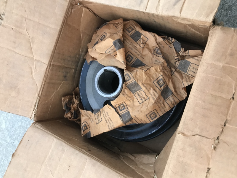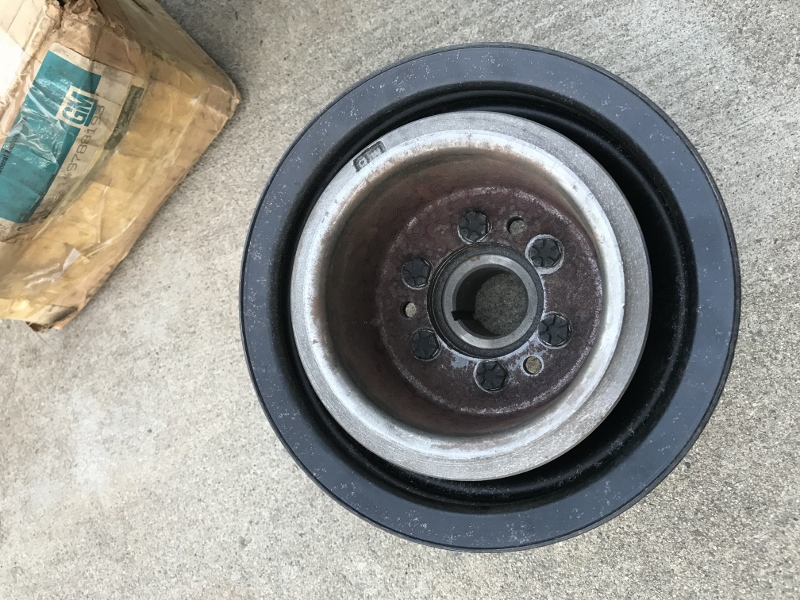 Here is what I believe is a NOS Ponitac GTO 1967 crank pulley / harmonic balancer combo for an a/c car (with 3 groove pulleys) it is part number 9788193 I think it will work for any Pontiac / GTO engine 326 400 or likely even the 455 but do your research please; I don't have a Poncho parts book to check. If any info is incorrect, or you can add, please post. $100 shipped to the 48 Thanks sYc. Anthony Last edited by AnthonyS; 05-07-2018 at 12:54 AM. Reason: lower price |