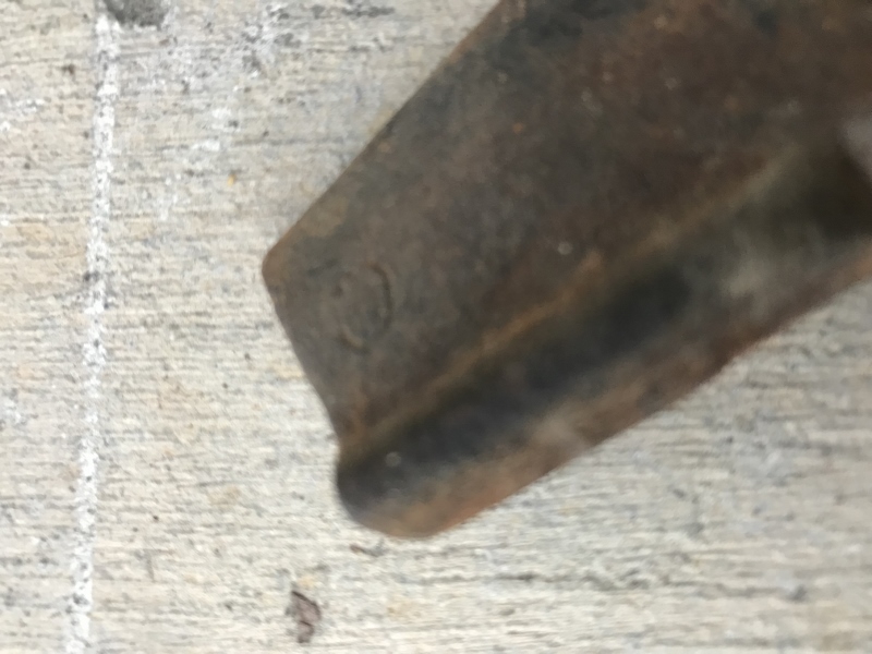 This one stamped "K" and includes the original 1/2" head bolt (RBW I think) and bent trapped washer - over tightened once like they nearly all were at one time or another. Rusty, but real and a rare assembly line piece that should blast up OK. $95 PPFF shipped & insured via USPS. |