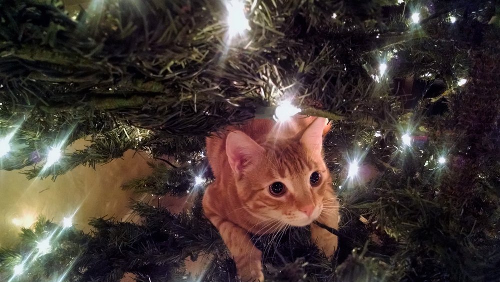 Even our Cheddar the cat is in the spirit...well, actually in the tree...LOL