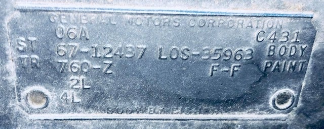 Subject VIN 124377L158178 W W w/ a side of wonder what it was like before repaint?![]() Here's a link to the 10/19 eBay auction, no sale w/ bids @ $ 40,150. https://www.ebay.com/itm/1967-Chevro...-/133208884359 Best of luck Mark if you try for it. ![]() ~ Pete .
