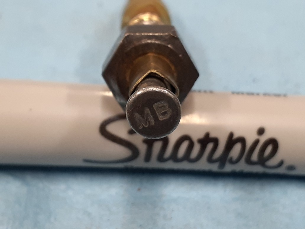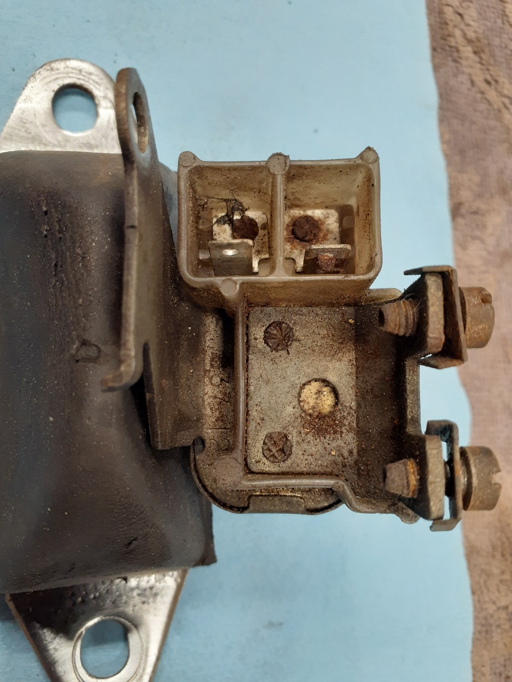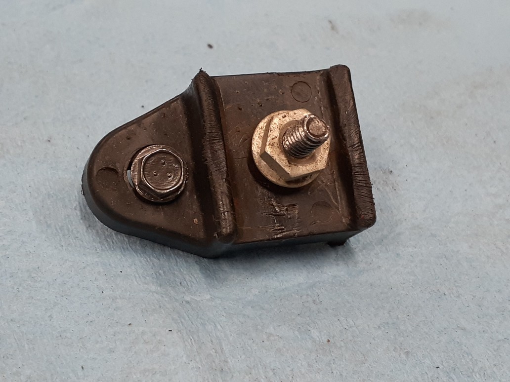 Excellent original assembly line installed positive wire to radiator support Junction block and 3 DOT Head marking mounting bolt. Also included the original 10-24 nut with captured washer. $45. Ppff