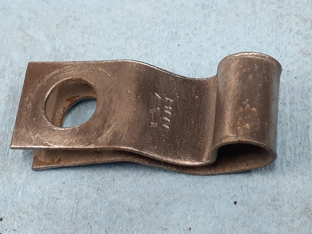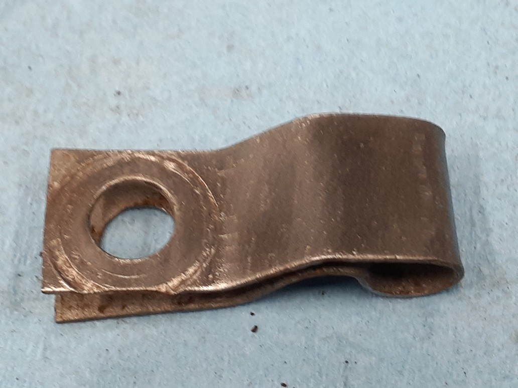 Original assembly line installed Camaro, Chevelle Nova rear brake line to rear end retaining clip. With manufacturer stamping. Excellent pit 3-piece. $30. Ppff