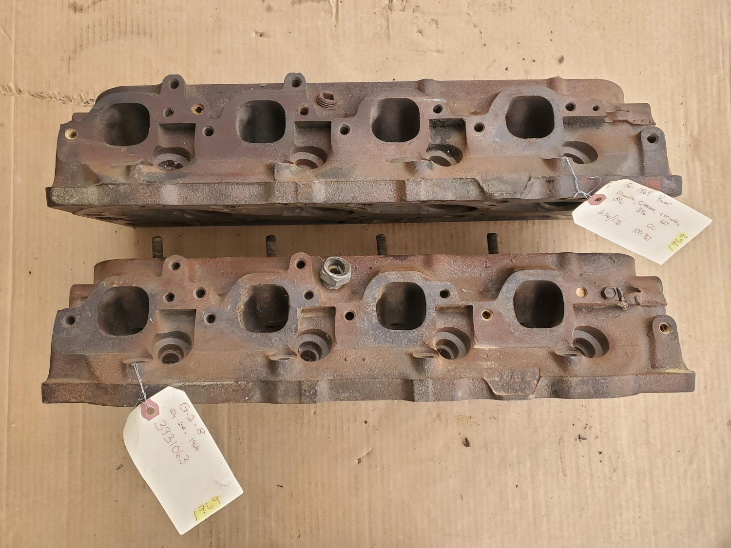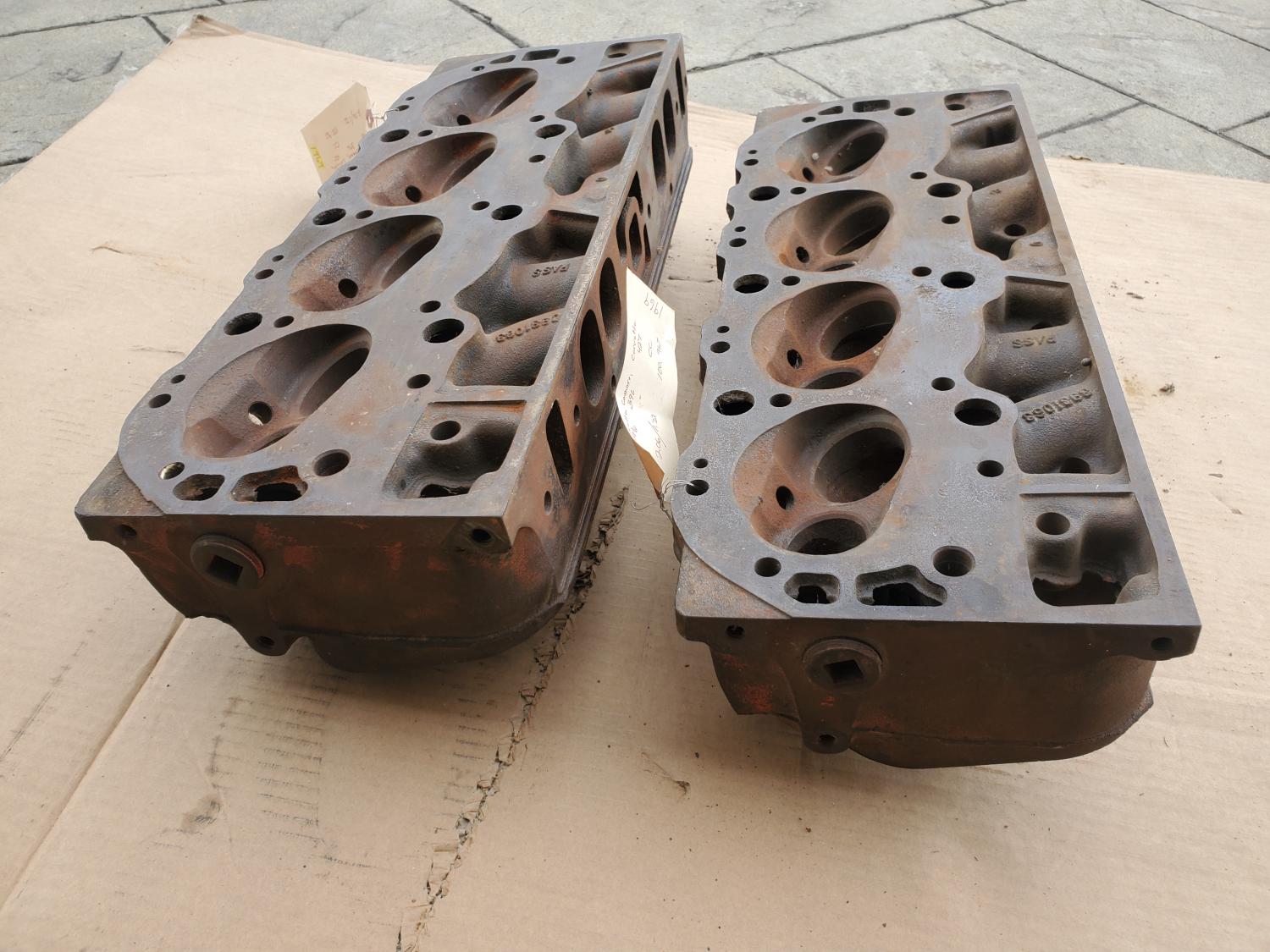 1969 oval port big block chevrolet heads casting number 3931063 dated G-2-8 & G-8-8. Heads are in stock condition $400. Can ship if you cannot pick up.