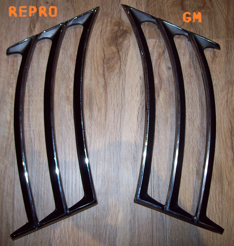 -Quarter Panel Rear Shark Fin Louvers Left and Right Pair, one is a New Reproduction while the other side is an Ecxellent used 8724408 GM Piece, No broken studs $150 *SOLD*