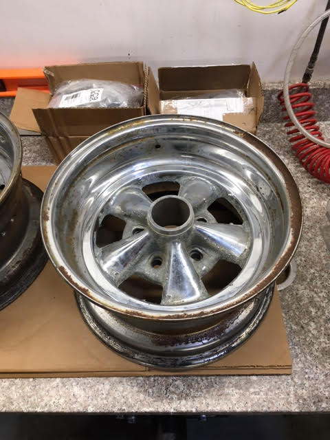 Here they are rusty 15x8 Cragar ss one is 1972 made in USA the other I am not sure. The hubs are not welded, they are dimpled in 3 on each spoke.