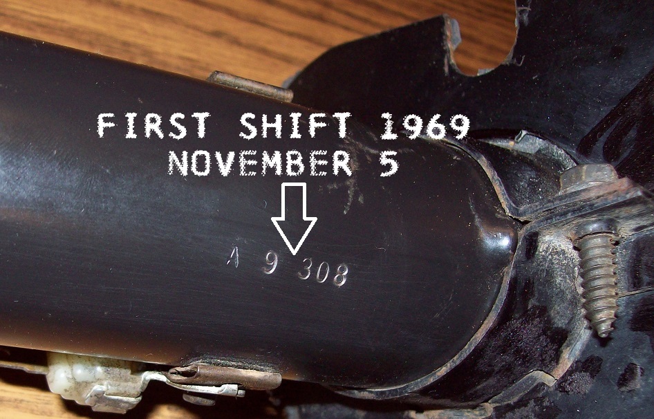 Complete 1970 Chevelle four speed non tilt steering column, includes original Ignition Switch dated 9J11 (1969 October 11), Reverse/Neutral Switch, Four Speed Firewall Plate, Ignition Key, Flasher Knob, Turn Signal Handle, Wiring Harness, 6813 Four Speed Backdrive Arm with Bushing, Main Bracket with Bolts and Steering Wheel Nut. Nothing has ever been restored and it still retains the original paint finish along with it's original orange label with partial part #06791 showing (Full Tag was CX 7806791 when new). Stamp Dated A-9-308 (A-Body or First Shift 1969 November 5).