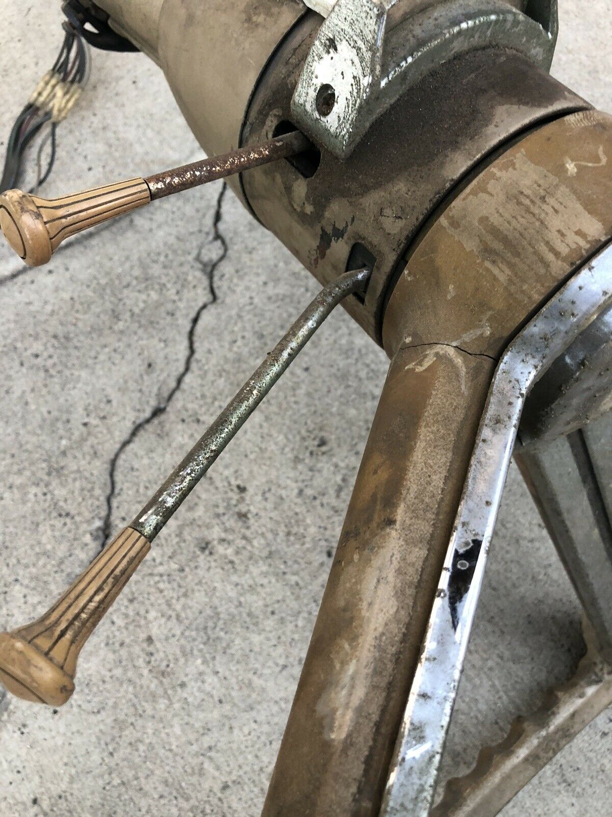 I have tried removing the knob from the lever but it feels like it will break. Has anyone been successful in removing the plastic knob from the chrome shaft without breaking it? If so, I can use another original gold turn signal lever and put the removed knob on the tilt lever. Thanks. Last edited by L79novaSS; 12-29-2021 at 05:23 PM. |