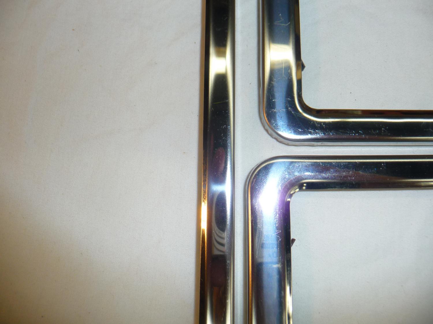 Here are 4 NOS LICENSE PLATE STEEL FRAMES. They have been on the shelf for years and have some lite scratches $55.00 each plus shipping thanks