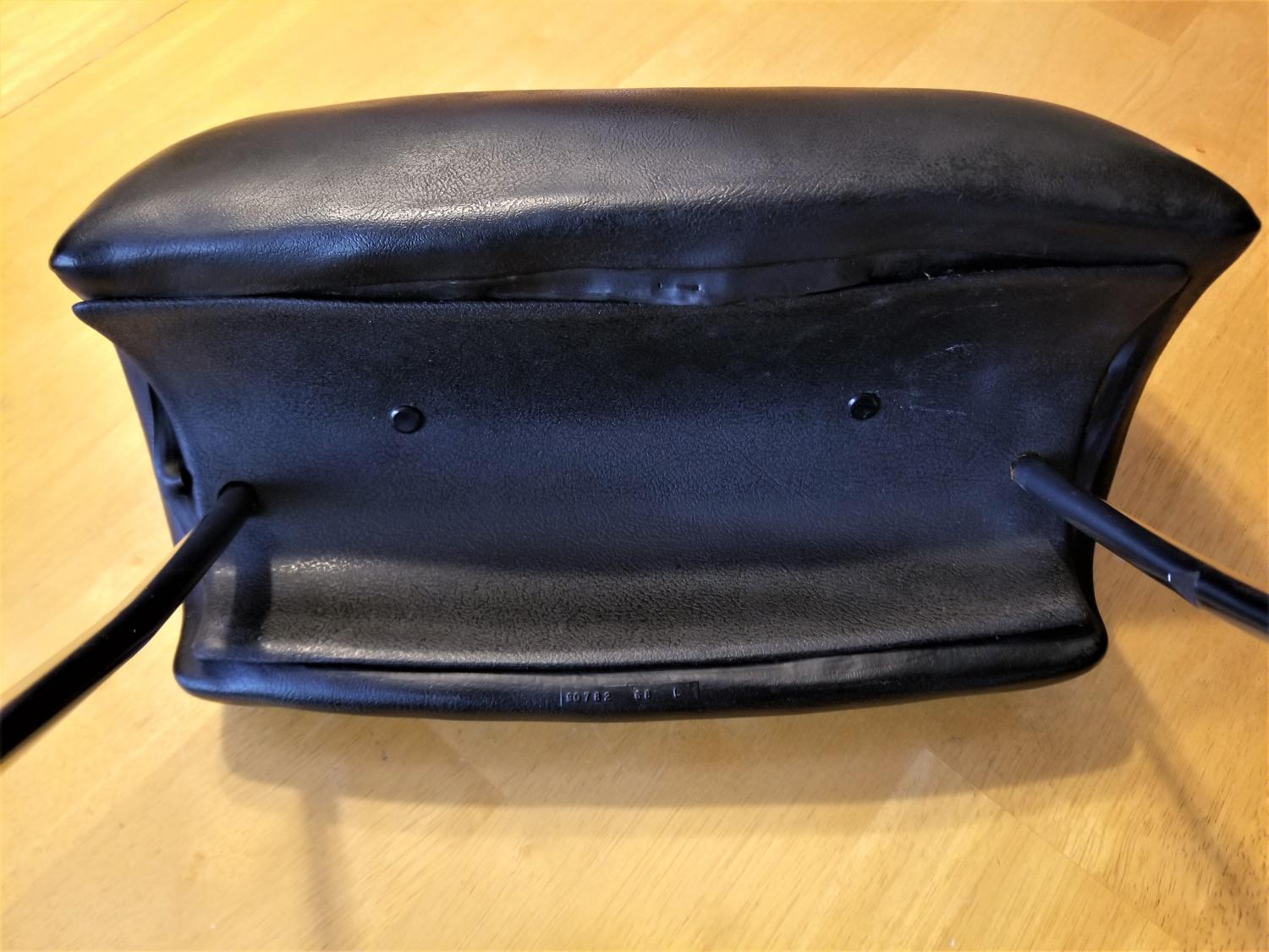 ORIGINAL 1968 GM A body headrest. It is dated March 7, 1968. Fits 1968 Chevelle, GTO, GS, 442. Never painted or dyed. Very good condition. Photos are to be considered an important part of this description. They show a clean, un-prepped part with a slight scuff that will disappear with dressing. Lower plastic panel has no cracks, and is in excellent condition. Cover shows a slight separation, which will not show when installed. $130.00 plus shipping.