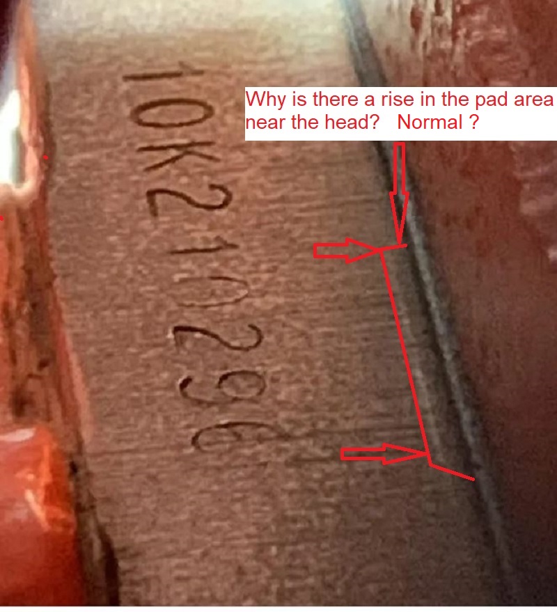 I am wondering why there is a ridge/rise in the pad area near the head. Is this some known casting normality? Or is it because it was cut down and they didn't get it set correctly?