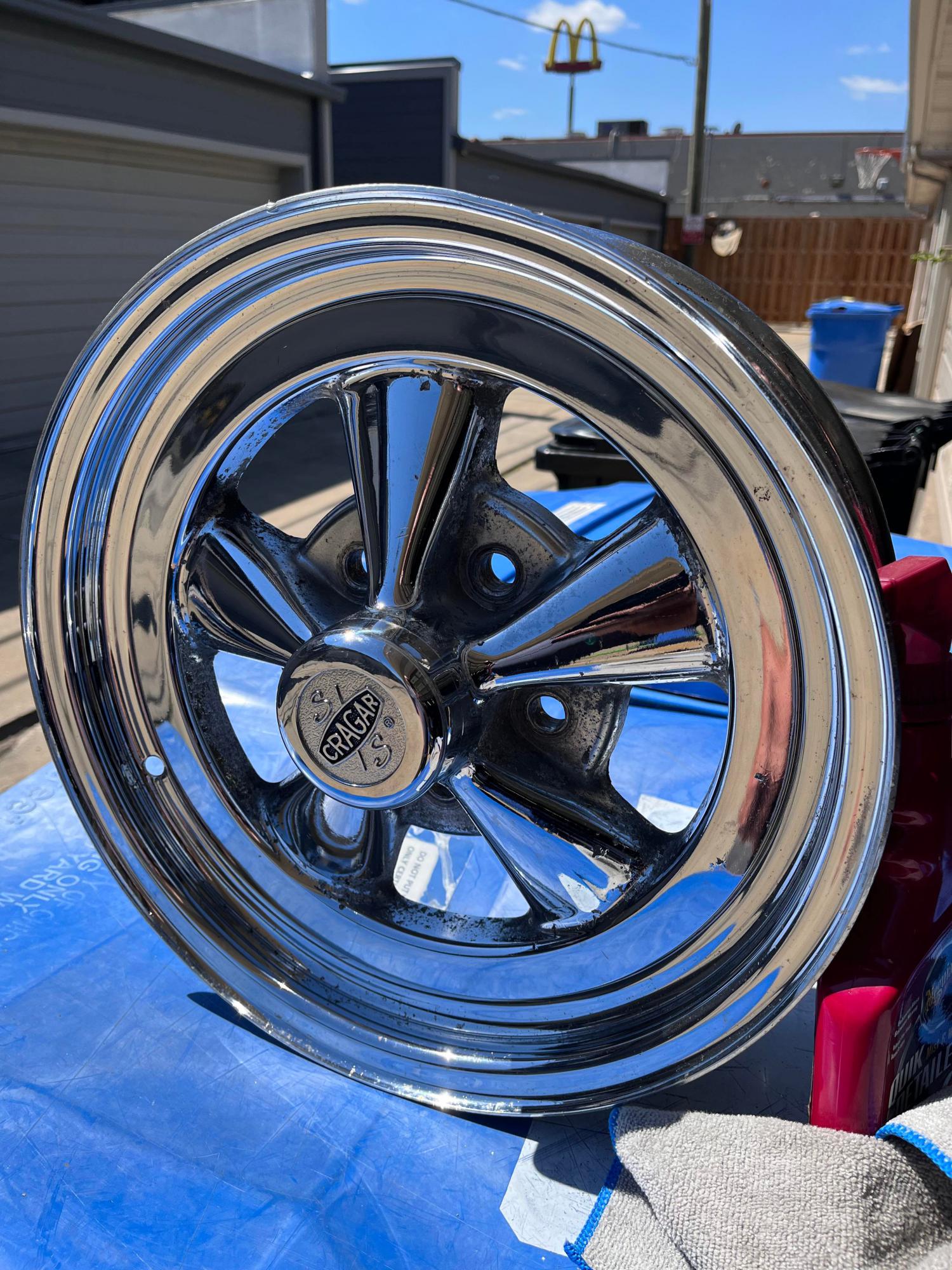 I picked up a set a couple months back that the chrome around the lug nuts and in between the spokes was peeling. I knocked all the flake off taped them up primed and used chrome paint turned out pretty dam good! By the way the are on the front of my 69 chevelle with factory disk brakes.