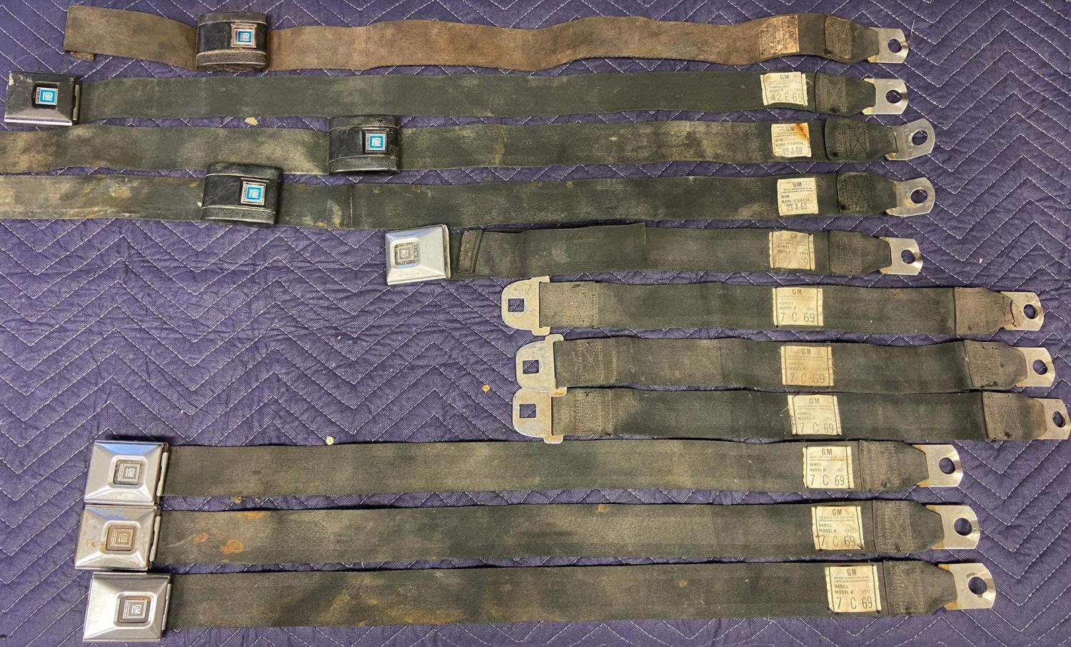 Take all or take none, Break up value is large but take all for $275 plus $25 Shipping. Includes Everything you see in the photos including 9 Retractors, 4 Deluxe Seat Belts, 4 Standard Seat Belts and 3 Male inserts. See Photos for Date Codes which are >>> 7th week of 69, 10th week of 69, 23rd week of 69 and 42nd week of 69. I believe many of these can be restored or cleaned up again. Paypal "Friends"