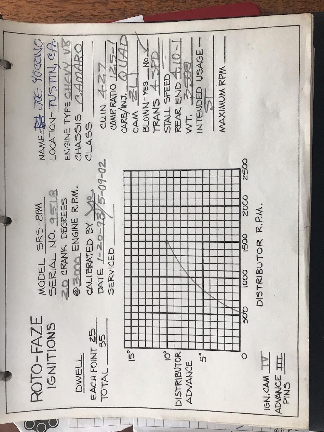 I received this data sheet from Roto-Faze yesterday. They are sending me some parts to return the dizzy to a mechanical advance. I also got what one of my friends referred to as........."the music box is back in place" |