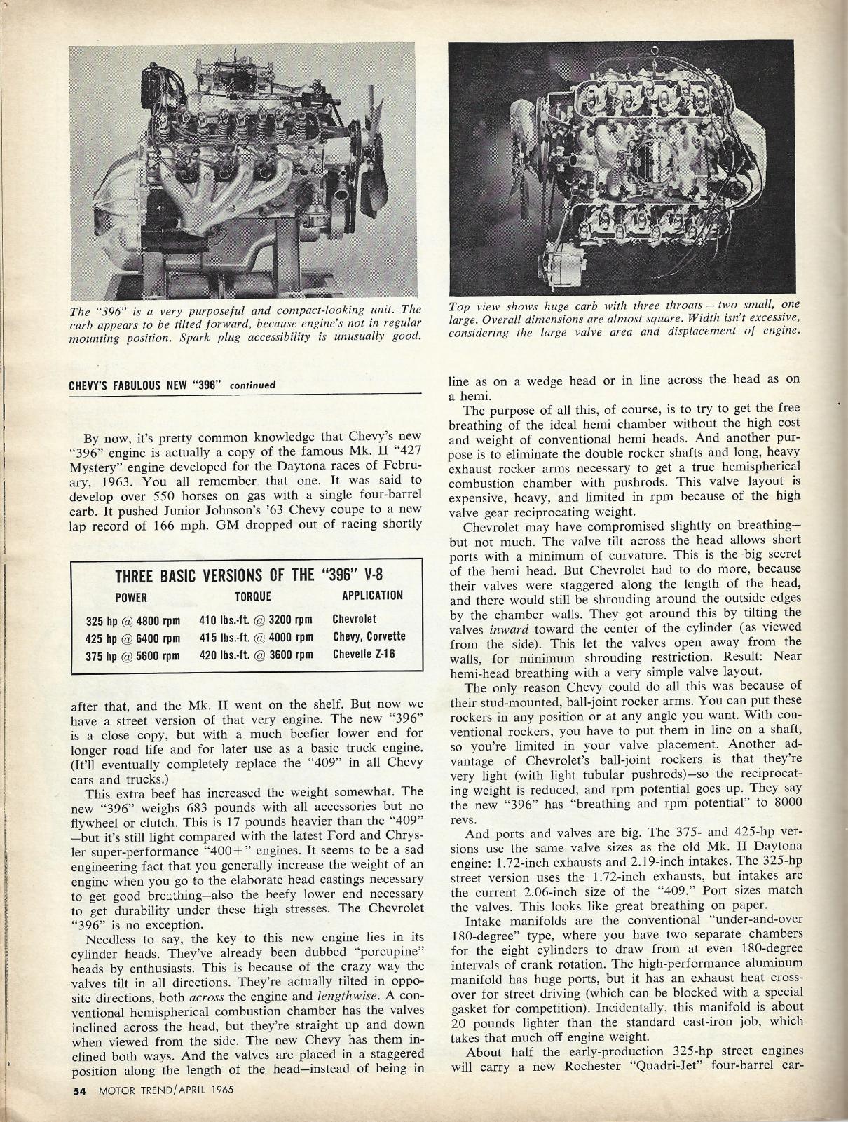 Roger Huntington provides insight and eciting intimate details of the new 396 as only Roger could. The 396 introduced groundbreaking product design, technology and manufacturability. This was the backbone for all future Chevrolet Big Blocks. Mr. Z16 Jeff H. may add some interesting factoids to the article....