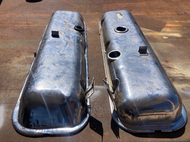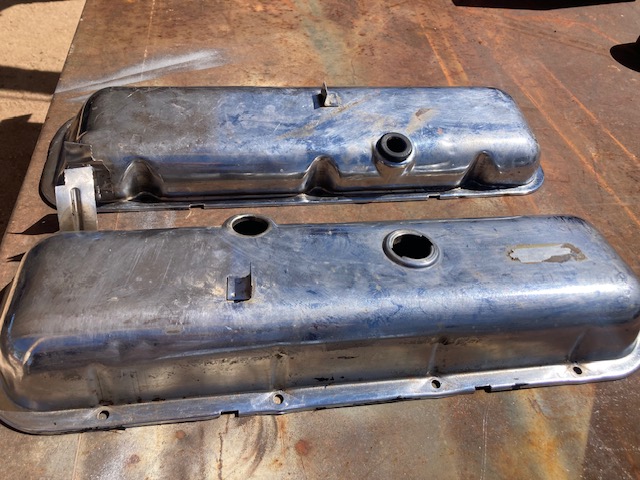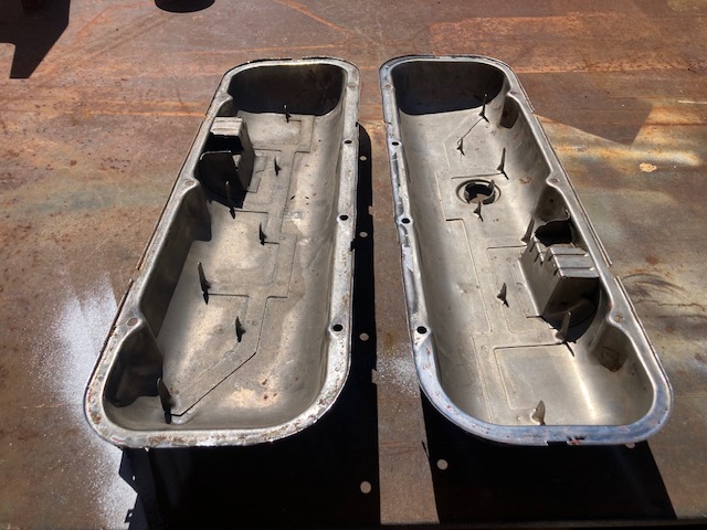 Selling a set of BBC vale covers. They have all the wire looms on them still. The one side has a little dented area as shown. There are scratches and scraps. The inside is not rusty and all drippers are there. The price is 175 PPFF shipped lower 48 USA. Larry 5203492337