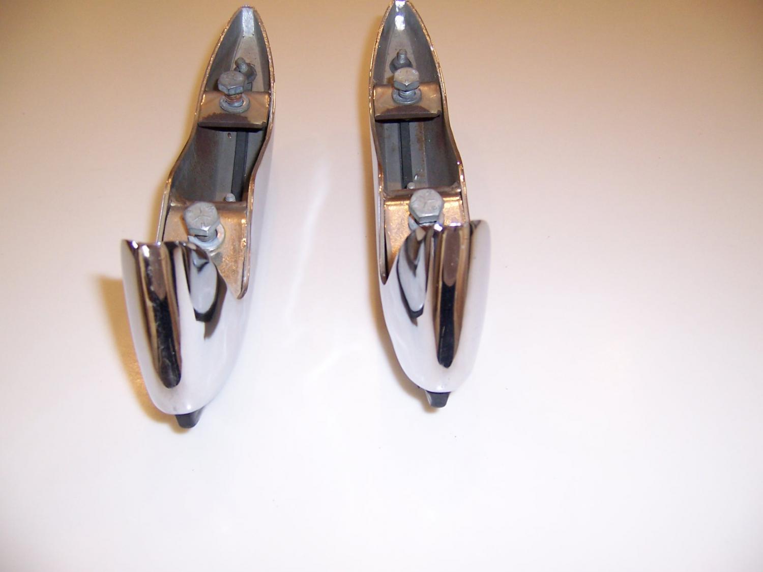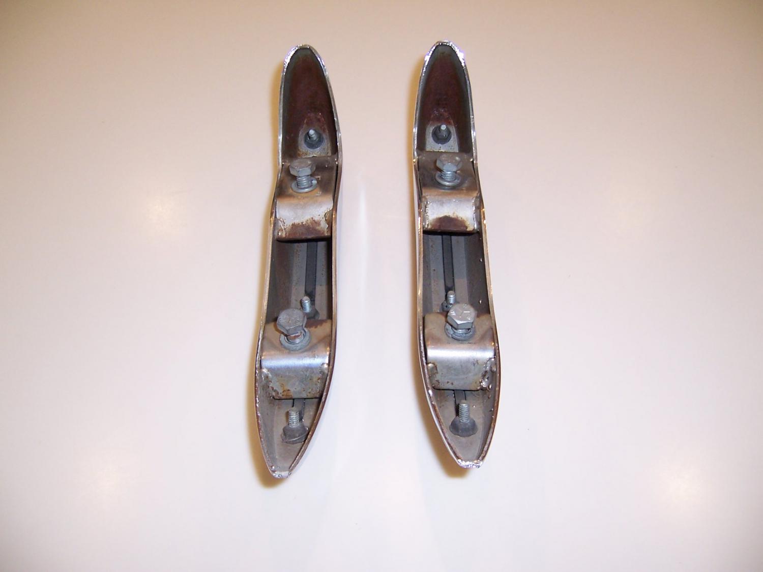 I currently have on eBay a pair of rear bumper guards. They are in excellent original condition, with very nice unpitted chrome and perfect rubber inserts. If you have a pristine, 1000 point show car you would probably want to have these rechromed, but for anything lesser, these would be fine as they are. I am 95% certain these are for a 1970 – 72 Chevrolet Monte Carlo, but judge for yourself. When I bought them 20+ years ago, I was told that they were for a 69 Chevelle. I had a 69 Chevelle at the time and some time after the purchase, I tried fitting these up to the rear bumper, and they just did not have the same profile. I then put them in clean, dry storage and essentially forgot about them. After a helpful suggestion from a fellow vintage car enthusiast here on sYc, I have now looked at pictures of the rear of a first gen Monte Carlo with rear bumper guards, and these look exactly the same. They are stamped ‘R’ and ‘L’ on the upper mounting brackets on the rear, for right and left side. These are being offered with a $9.99 minimum bid and NO RESERVE.