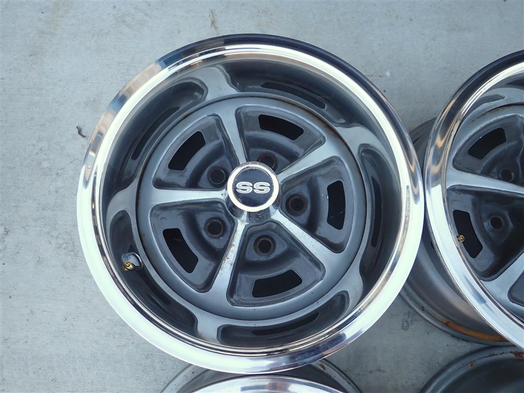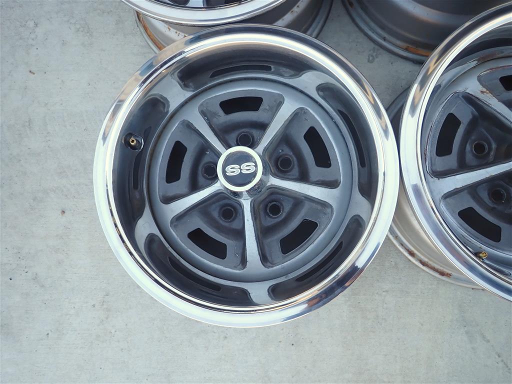 This is a set of real deal original GM Magnum 500 "SS" wheels with center caps and trim rings. This style wheel was an option on 1969-1970 Chevelles and Novas and 1969 Camaros. The wheels are 14x7 and have a 5 on 4 3/4 bolt pattern which is common to most GM passenger cars. Please confirm your specific application.