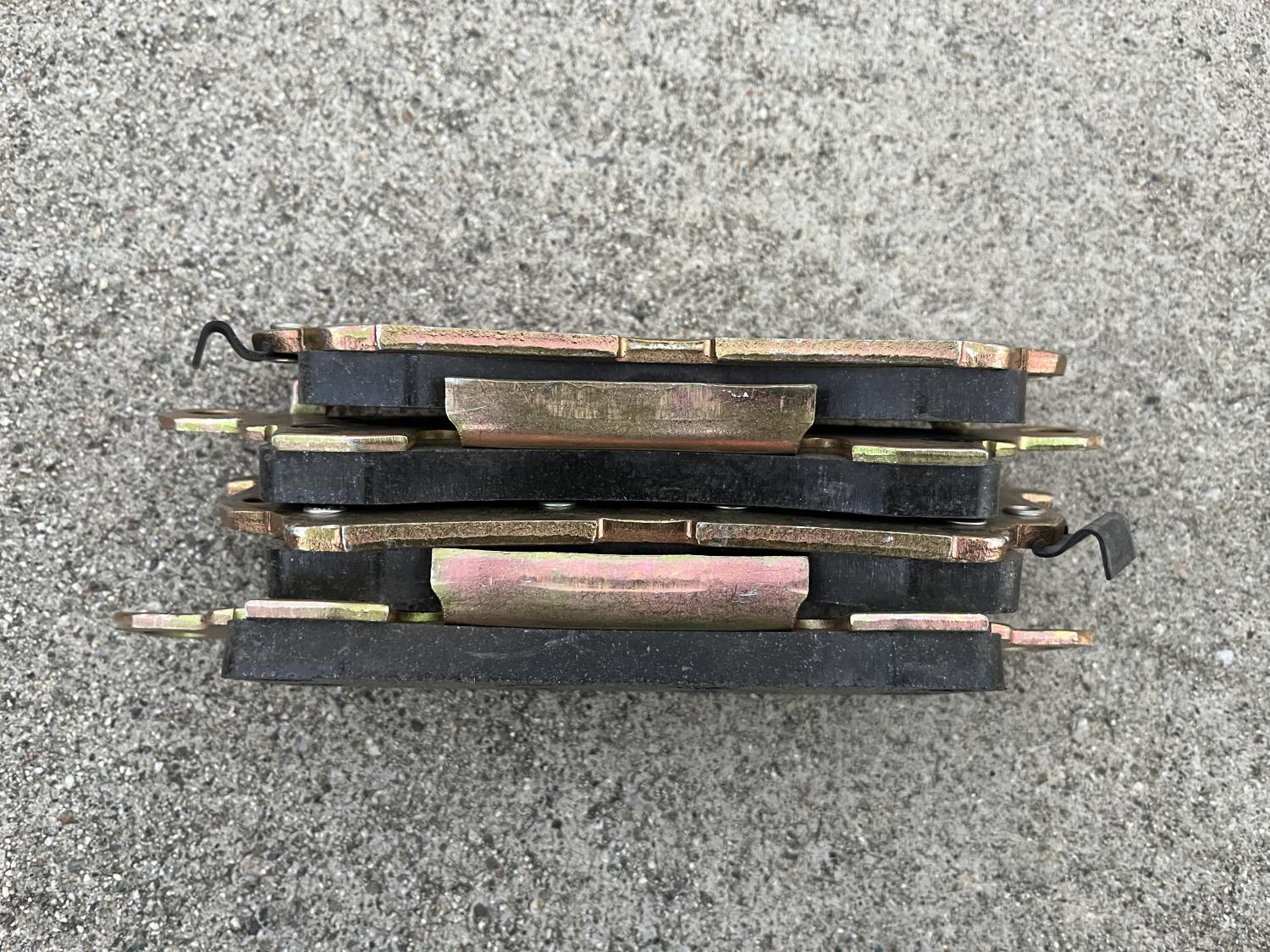 I have the below pictured set of new old stock after market brake pads that look like the originals, i.e. organic / semi metallic pads and gold iridite backing plate with no shims and a wear indicator. The "next best thing" appearance-wise anyway, to NOS Delco IMHO. Better than the currently available black backed and glued / bonded pads. See photos please. These pads also fit nearly every early GM single piston caliper of this era - lots of applications of course. This is a set of four pads as shown, enough for two calipers / one car. Also see my other ad for the original rebuilt 69 Camaro only calipers - 5463633 633 - 67 - 74 Nova too. I may have some cores listed / available too. Chevelle too. Thanks sYc, Anthony |