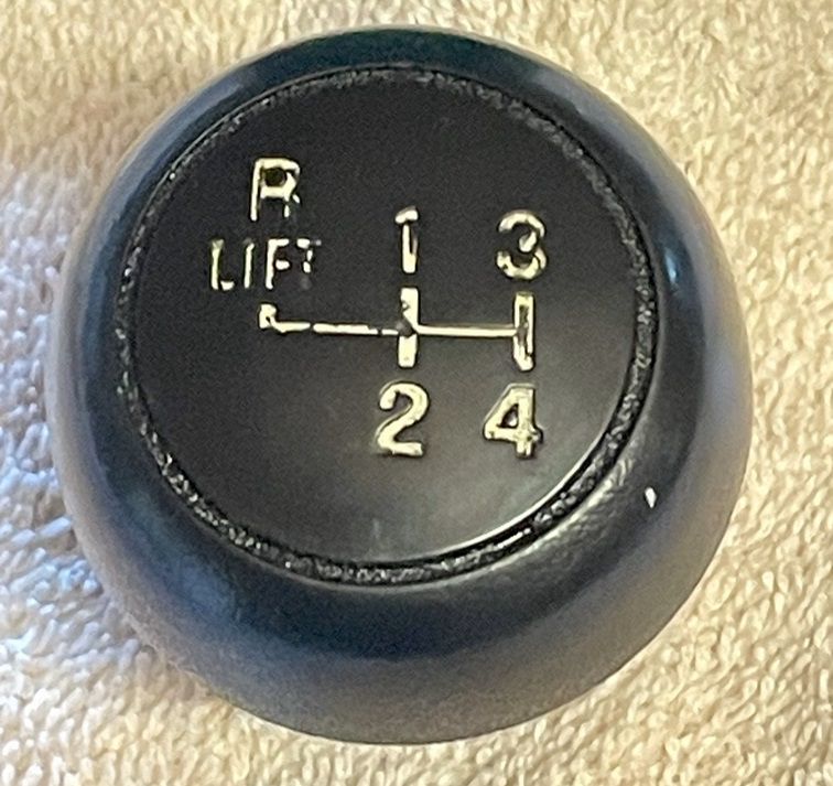 The shift knob circle on top is roughly 1 3/16" diameter. I believe the later ones had a smaller size shift pattern