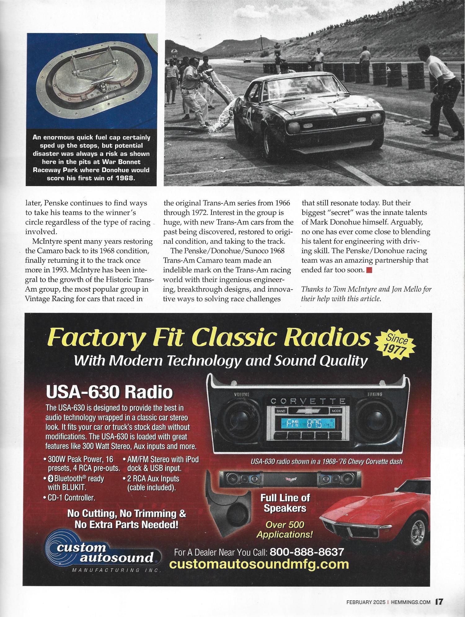 This is a 6-page article by Cam Benty with much help by our member Jon Mello a Trans Am historian with many decades of research and Tom McIntyre owner of the Penske Team 1968 #6 Trans-Am Camaro. Kudos to all involved!