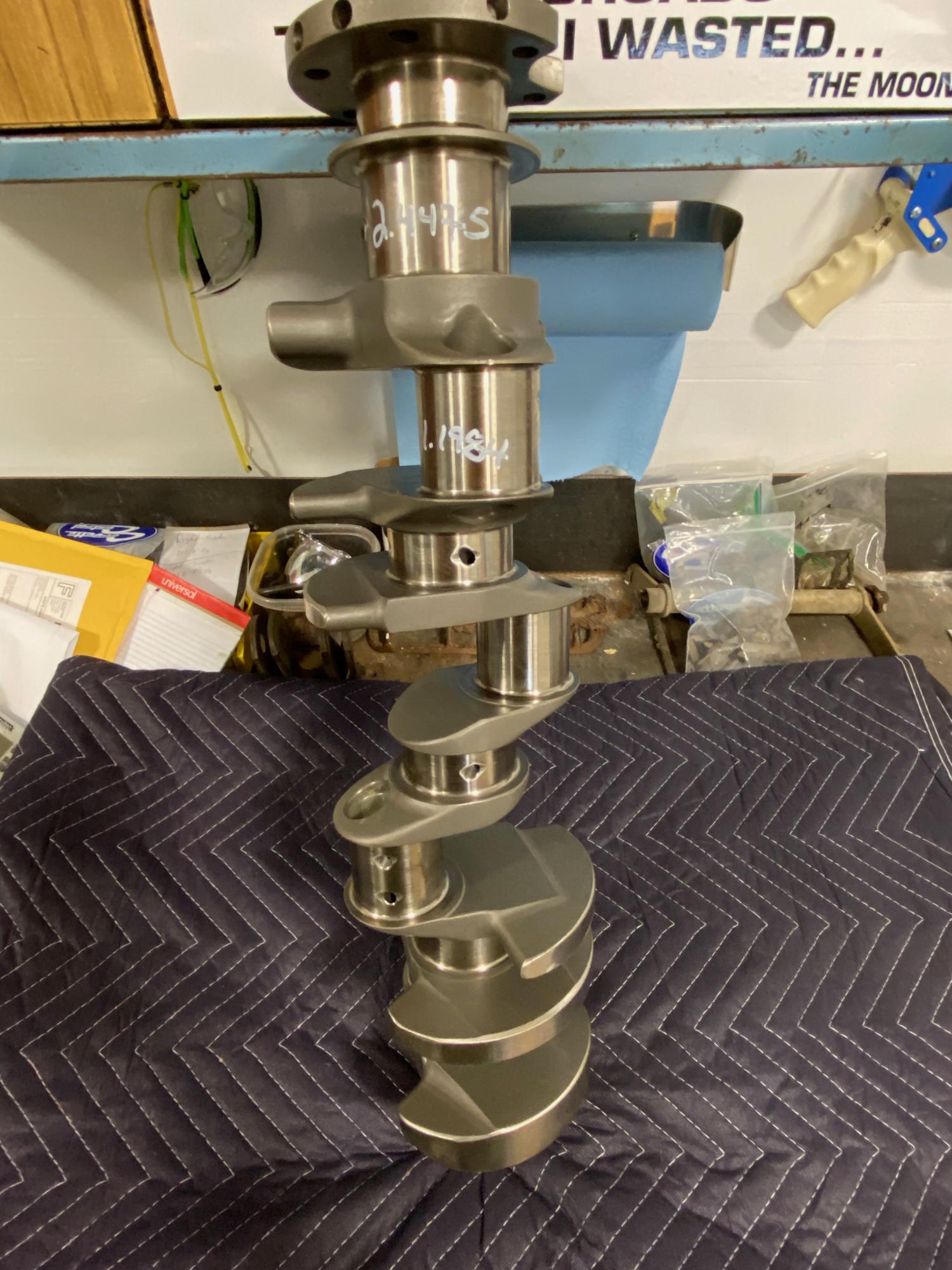 The mains are standard sbc size, the rod journal looks larger than 1.1984 written on there, maybe it should be 1.9984 ( small journal), also a very light heat treated crank maybe 30 * at 3.1 stroke.