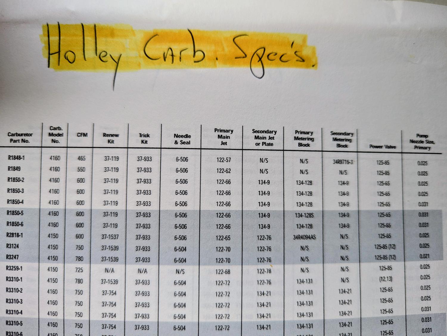 That listing is where I have an issue. The carb I have is and early 4150 with two PVs and it indicates *(12-13)* which does not appear at the end of the chart. The listing on that chart is a single PV for a 4160 carb. UGH! Thanks for the response!