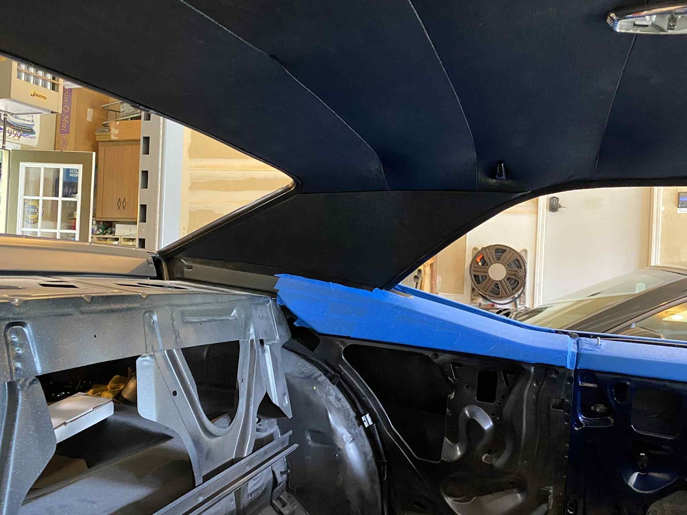 My man, Pete came over today and was able to finesse the original headliner and sail panels back in after 48 years on the shelf. It's not 100% perfect but it's damn close! Pete is 78 years young.
