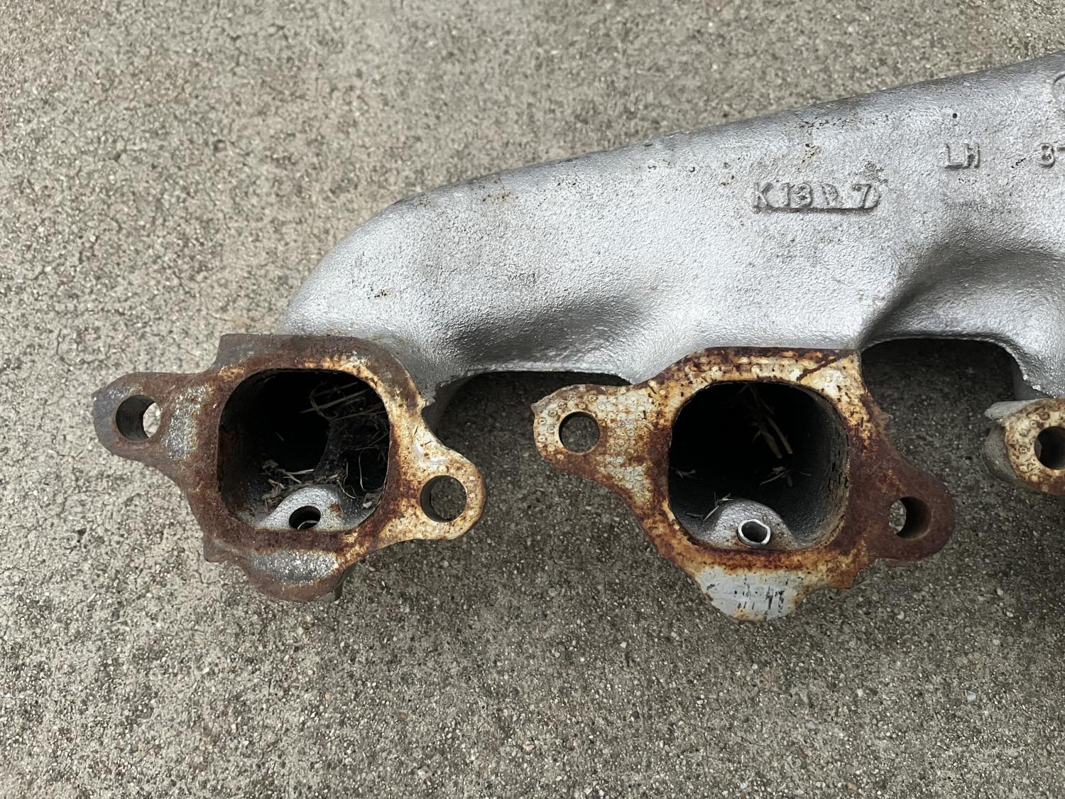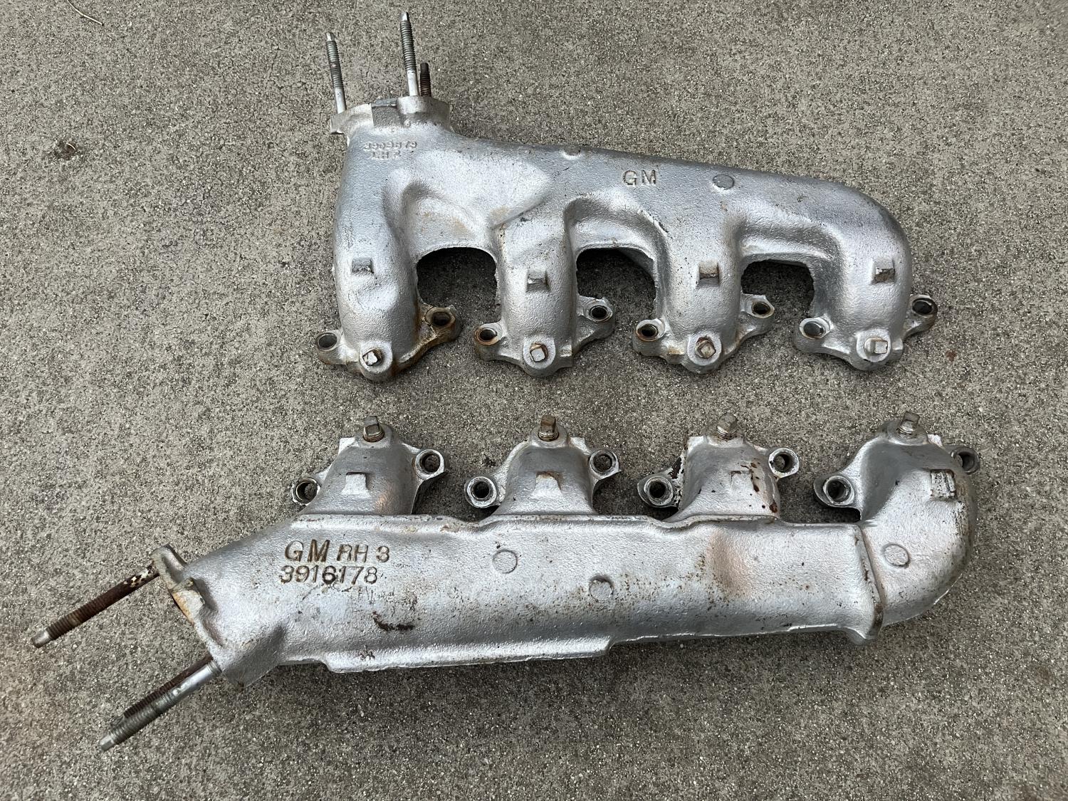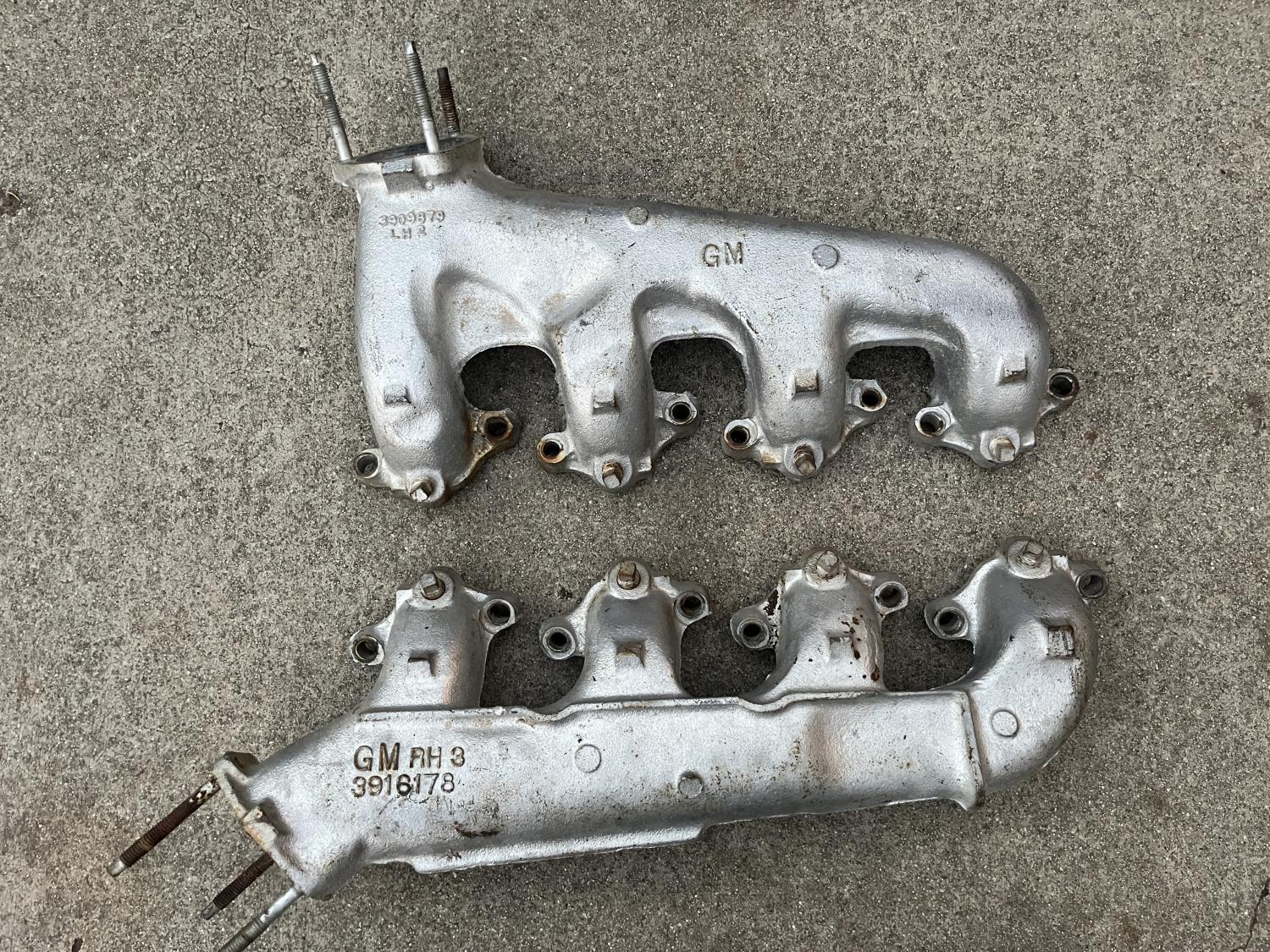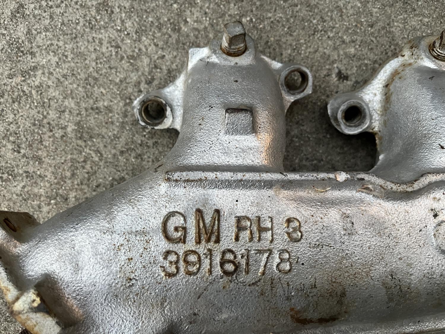 I have the above mentioned (and below pictured) BBC Big Block exhaust manifolds available here. the 3916178 side is dated K-15-7 the 3909879 side is dated K-18-7 A never separated pair of November 1967 dated factory CA smog manifolds. Nicely dated and all ears intact and mounting studs present, but some look like they've been replaced. Removed a while back to install headers and had sat until I found them. Painted rattle can silver some time ago when that might have been fashionable - these will / should clean up / blast nicely. Never pitted California parts with crisp castings that will present perfectly, IMHO when restored. Or run them as is after a quick cleaning. Camaro Nova Chevelle Many photos below, cheers! Anthony |