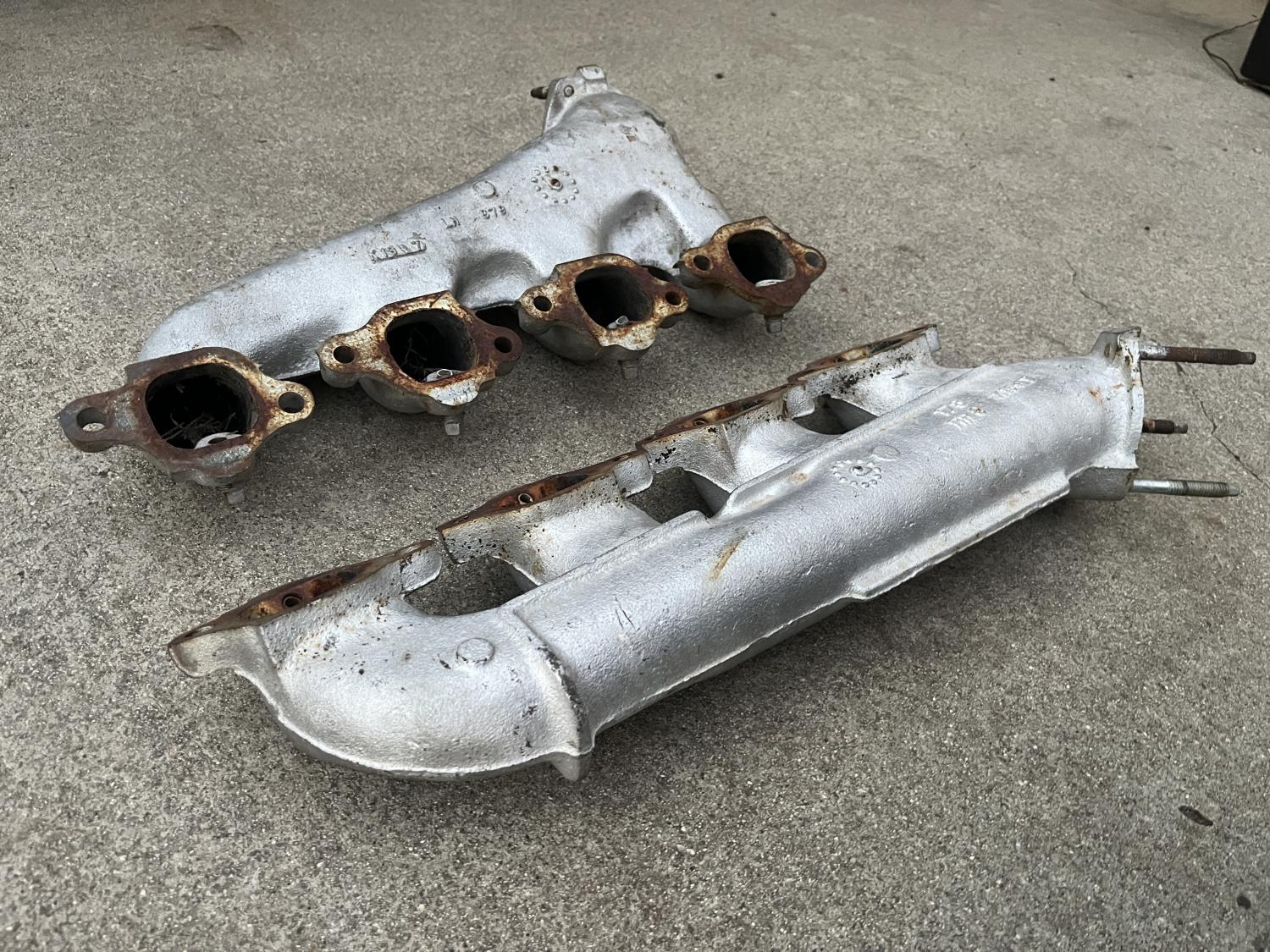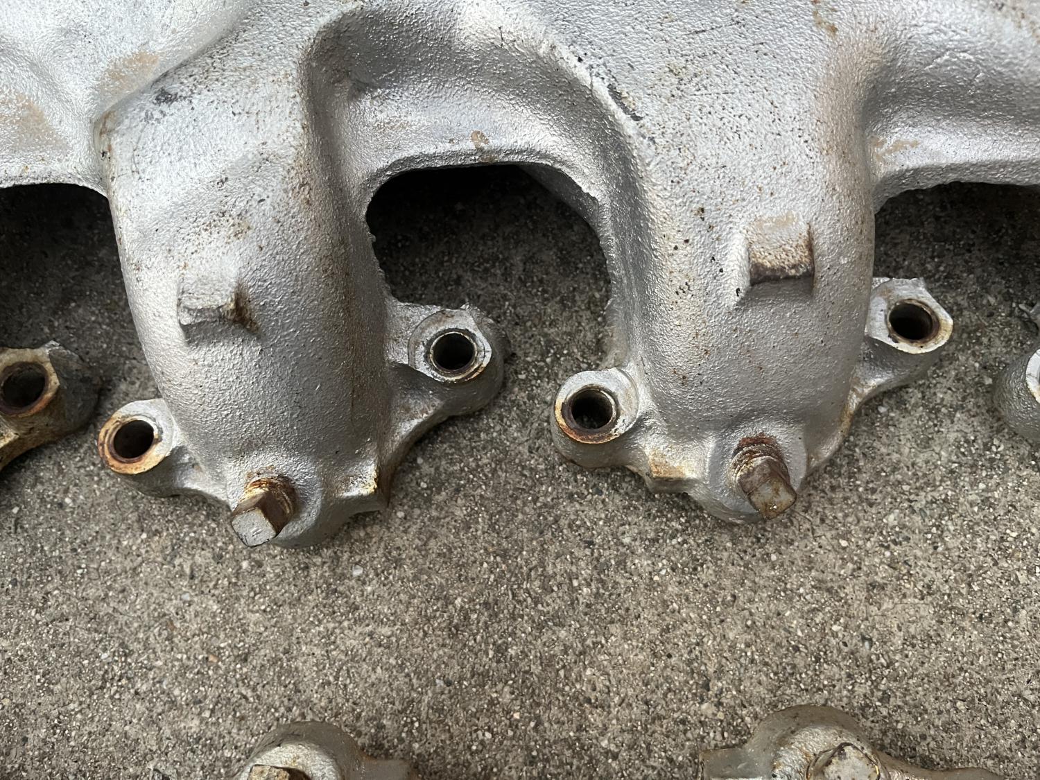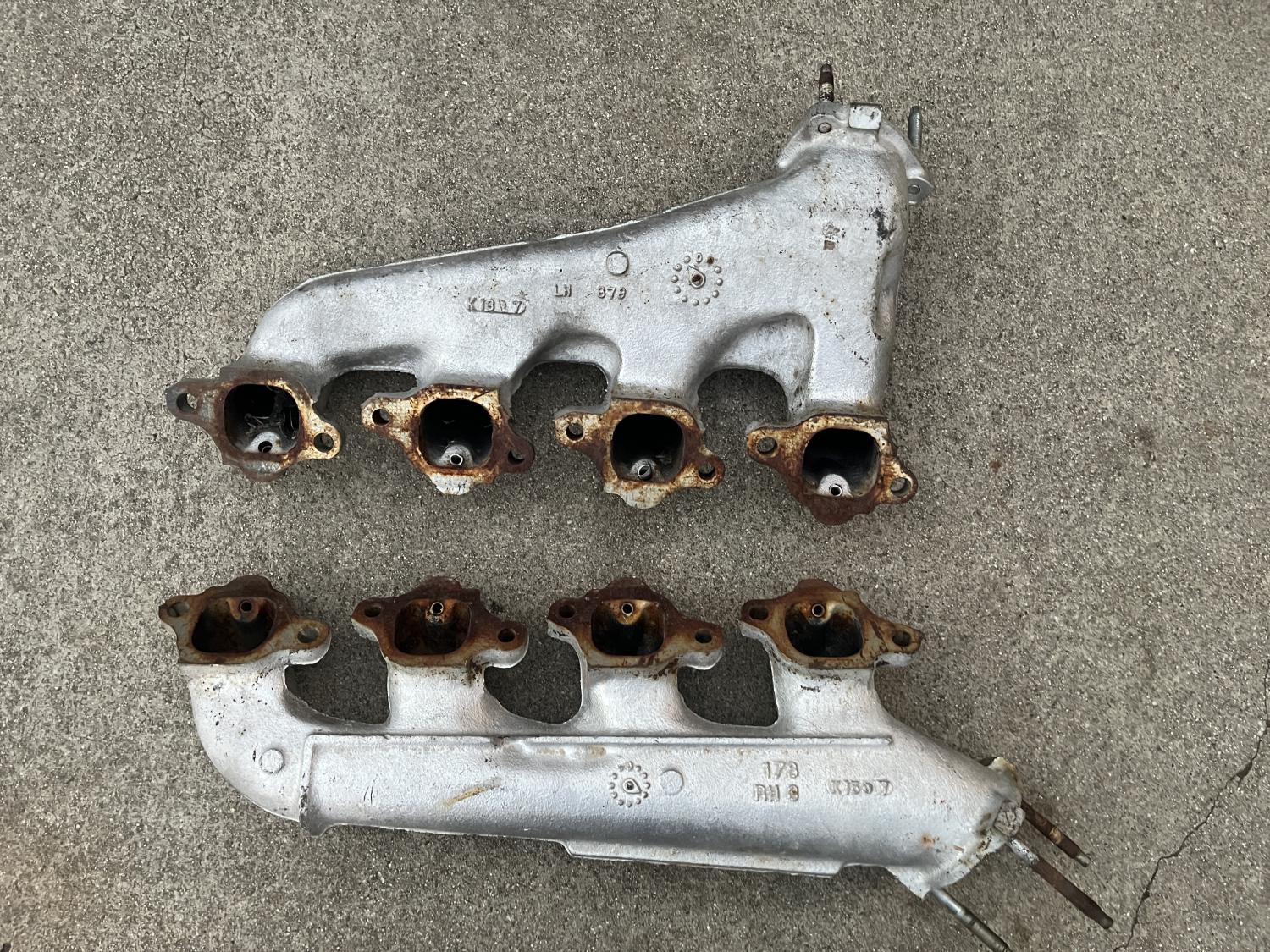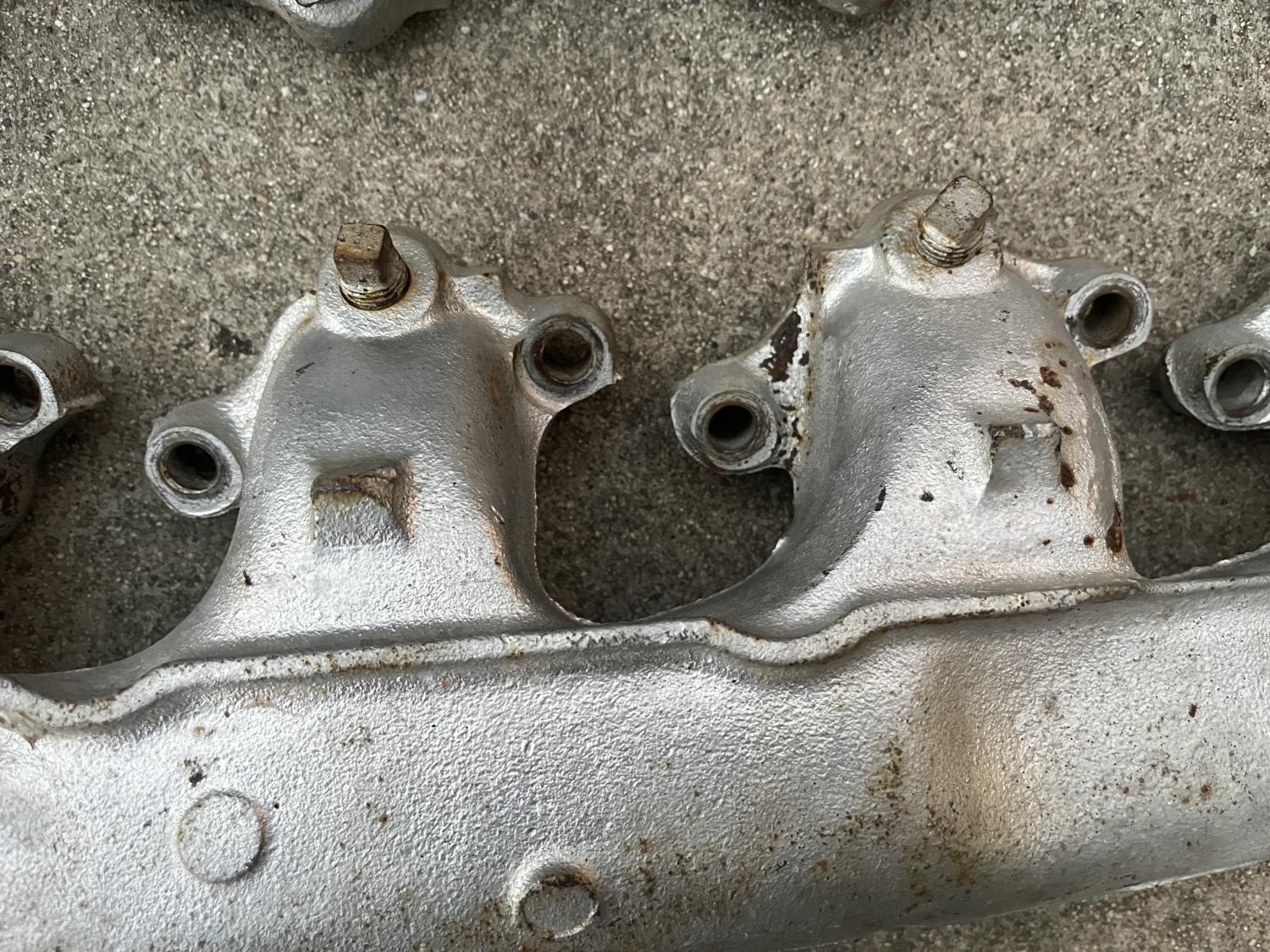 I have the above mentioned (and below pictured) BBC Big Block exhaust manifolds available here. the 3916178 side is dated K-15-7 the 3909879 side is dated K-18-7 A never separated pair of November 1967 dated factory CA smog manifolds. Nicely dated and all ears intact and mounting studs present, but some look like they've been replaced. Removed a while back to install headers and had sat until I found them. Painted rattle can silver some time ago when that might have been fashionable - these will / should clean up / blast nicely. Never pitted California parts with crisp castings that will present perfectly, IMHO when restored. Or run them as is after a quick cleaning. Camaro Nova Chevelle Many photos below, cheers! Anthony |