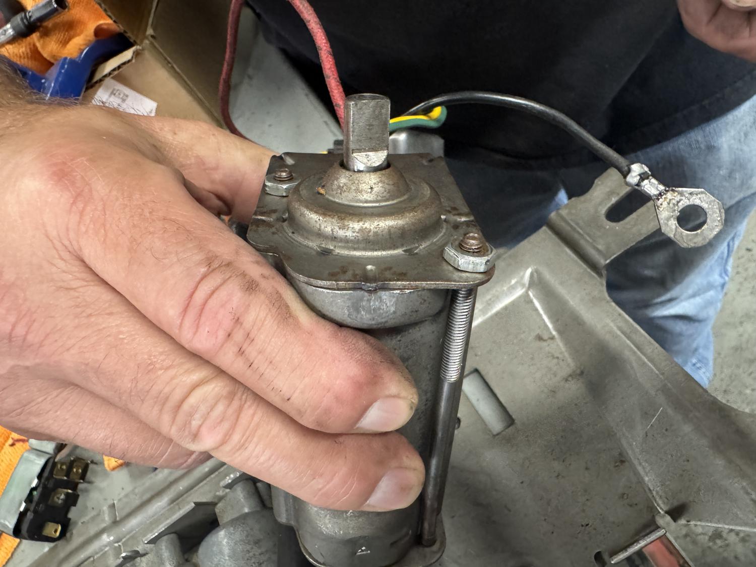 It almost looks like the Corvette headlight motor. You can call Bill Naeger at 618 656-5398 or 618 803-8554 [email protected]. CGR Restoration rebuilds the headlight motors too. Their contact info is 864 642-9308 www.cgrrestorations.com.