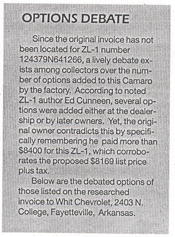I remember this car when it was for sale in the 80's, for $45,000. I considered buying it. but would have had to sell my 1968 camaro RS/SS L34 Hi Perf. 396 convertible with a/c. I knew this ZL1 camaro was super rare with only 2 RS ZL1'S made,and at $45,000 I knew this was a super deal, but it didn't have a convertible top,or A/C, and these are two things I had to have. The Hi Perf 396 for me,and the convertible and A/C for my wife. I wish Chevrolet made a ZL! convertible!